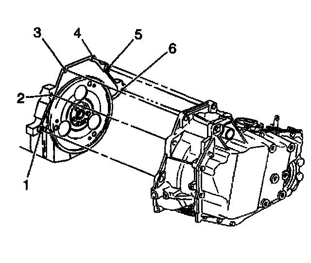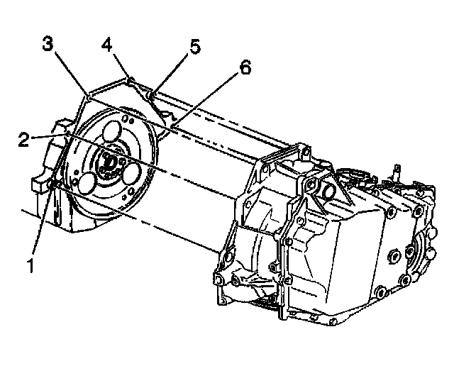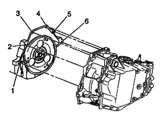 6. Install the transaxle case to engine bolts (1 and 6).