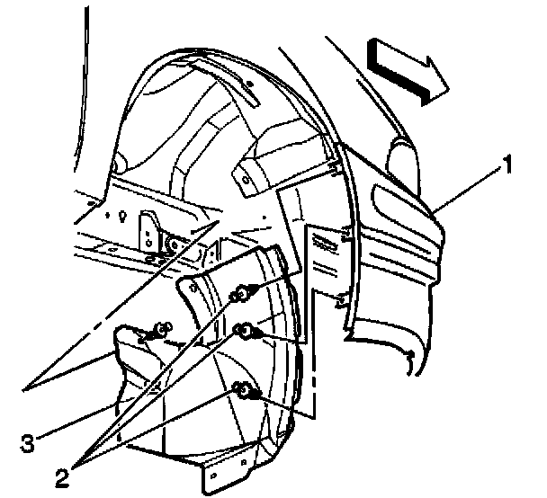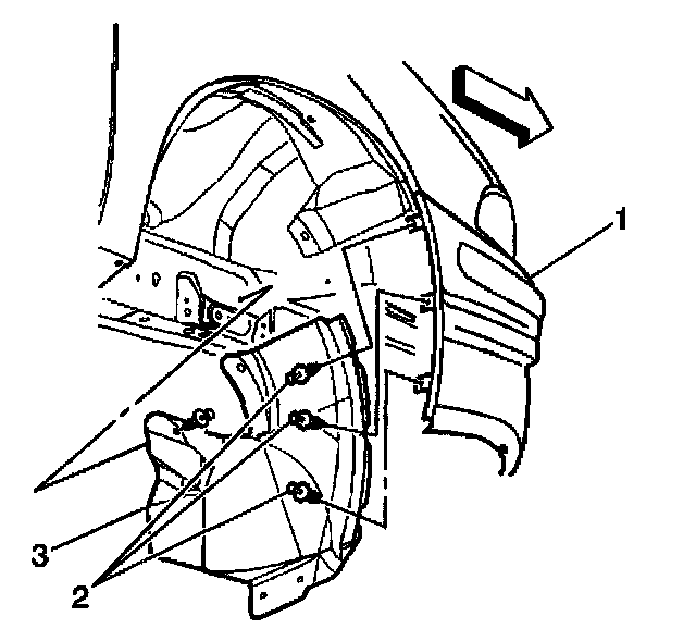 13. Remove both of the front fascia extensions (3).
