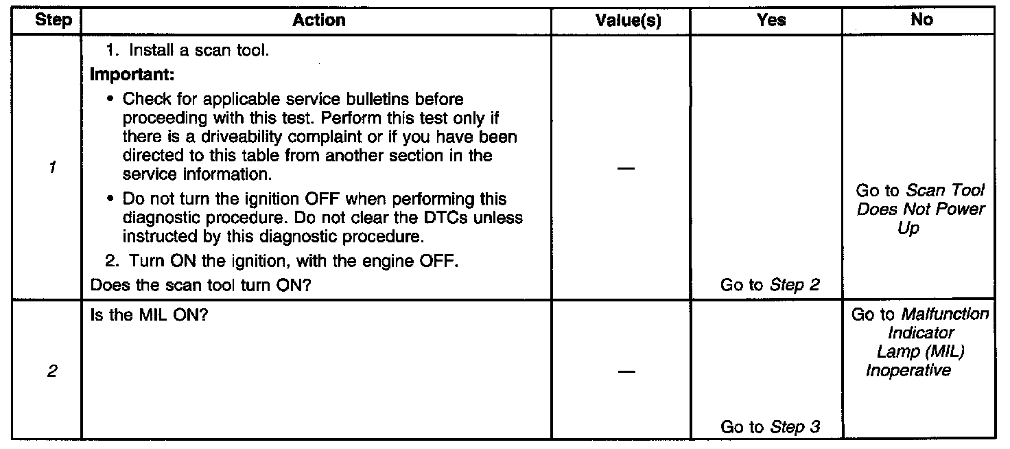 1. This step determines if the scan tool is receiving power through the DLC connector.