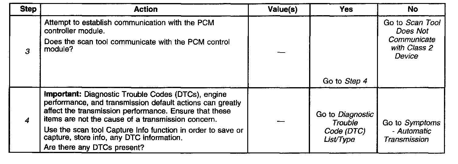 ^ Poor engine performance can sometimes be diagnosed as a transmission driveability condition. In order to avoid mix-diagnosis of the automatic transmission, always perform Diagnostic System Check - Engine Controls.