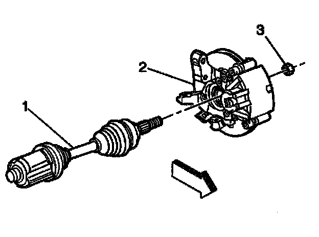 3. Install the wheel drive shaft to the hub and bearing (2).
