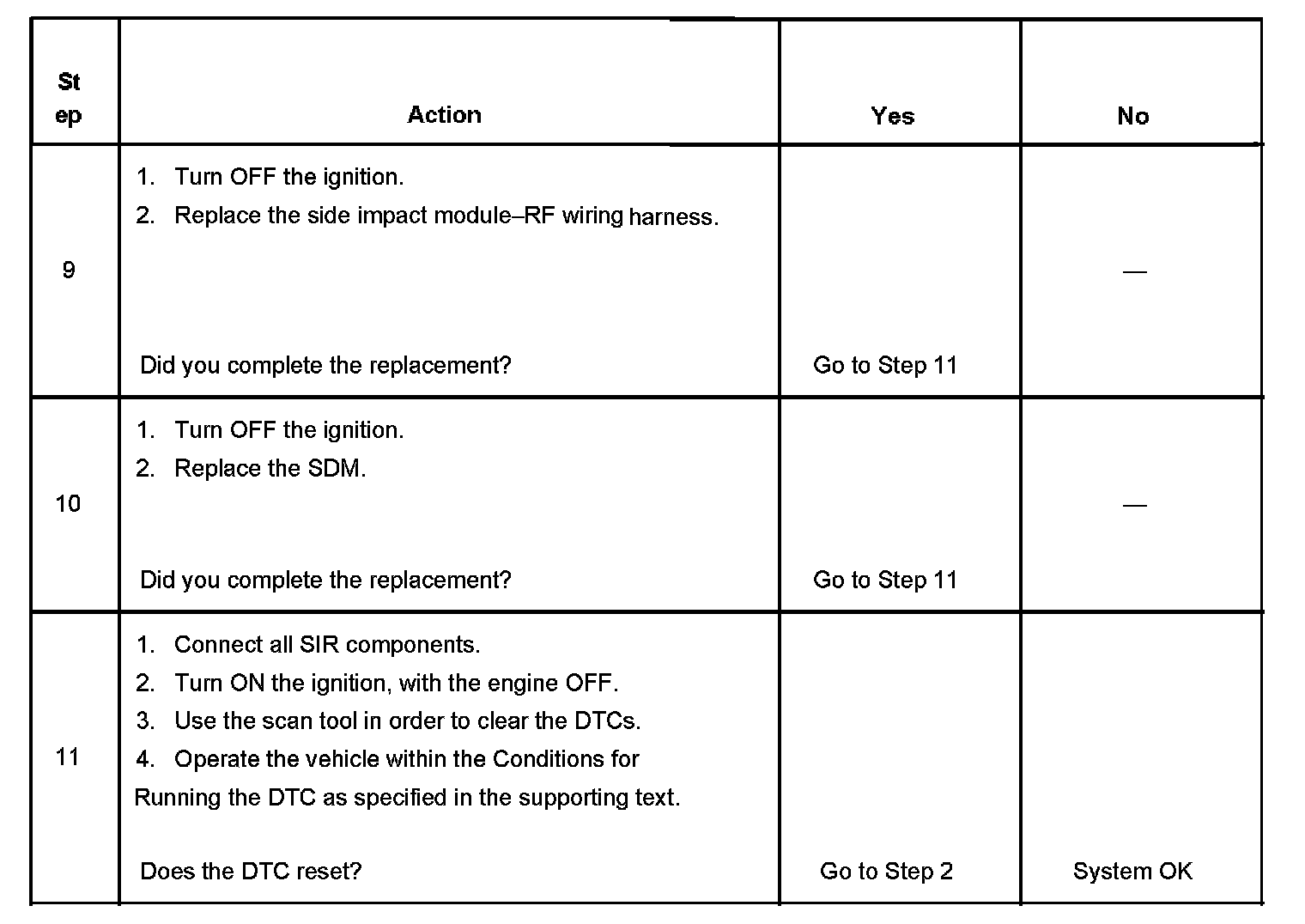 - A side-impact module-RF high circuit is less than 2.4 volts and the side-impact module-RF deployment loop is more than 6 ohms for 500 milliseconds.