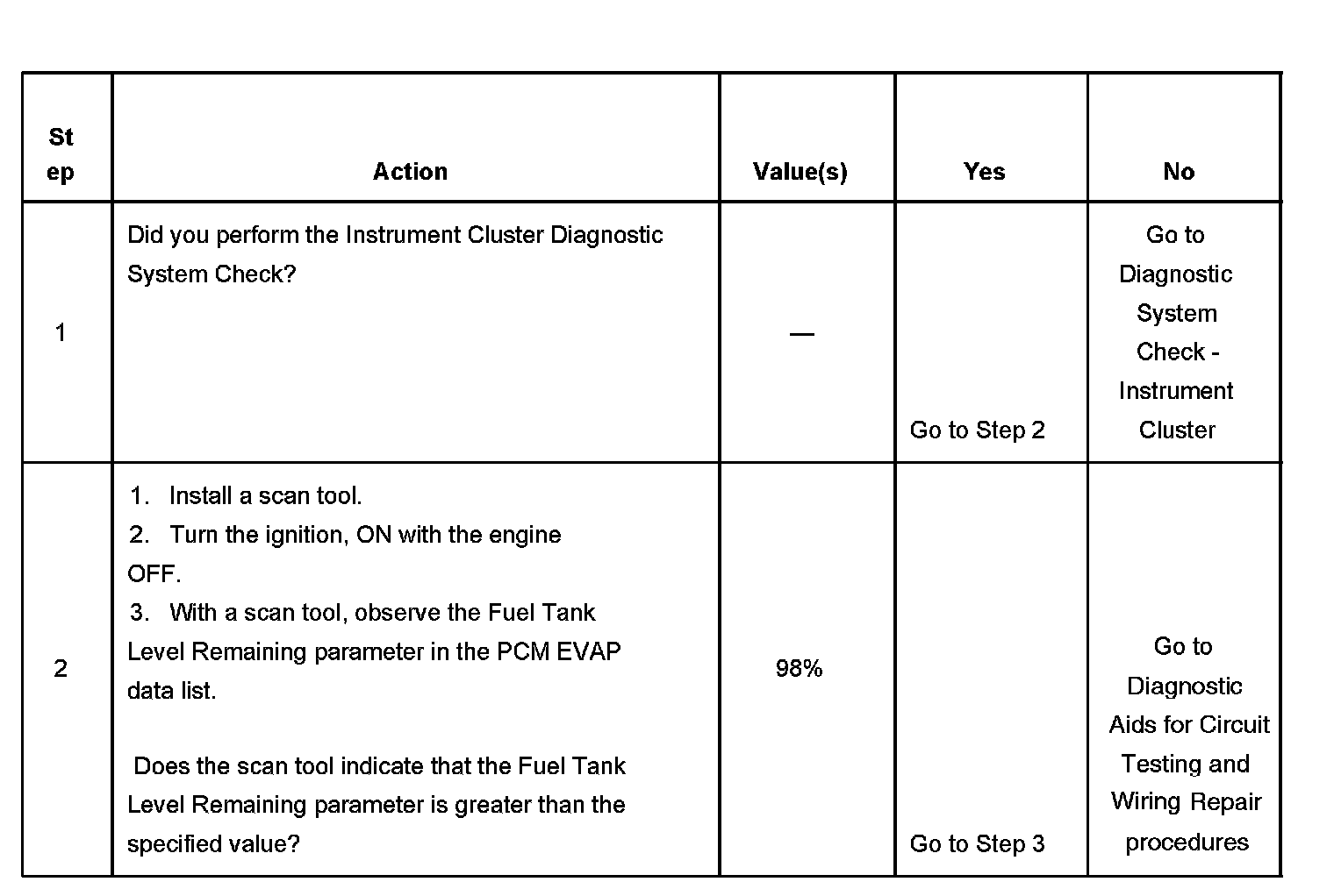 The number(s) below refer to the step number(s) on the diagnostic table.
