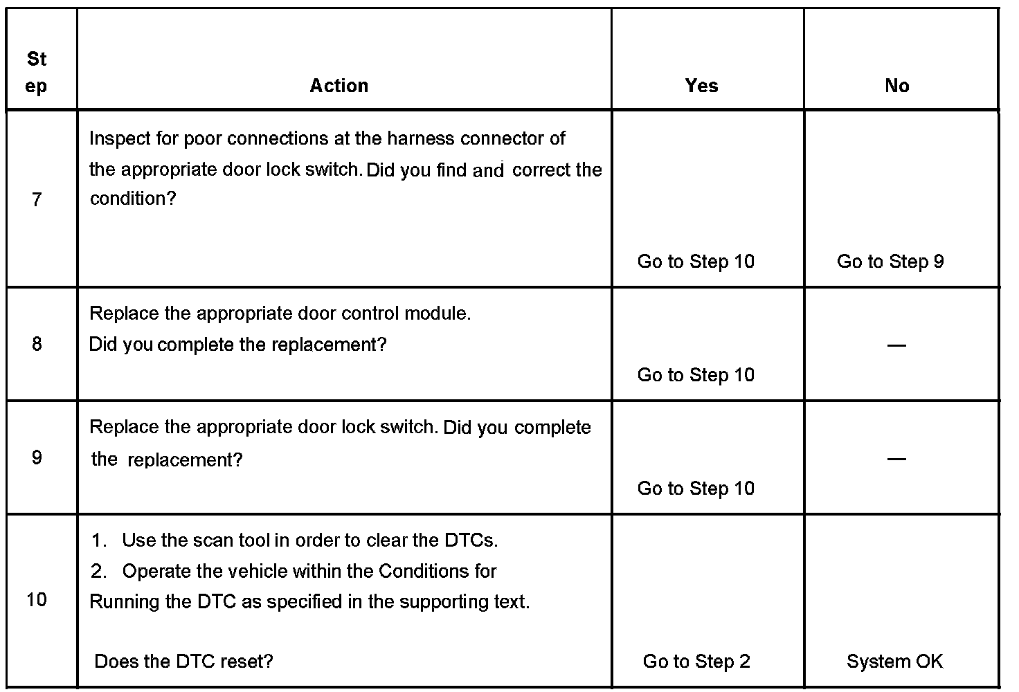 The DDM ignores any message from the lock switch designated by the DTC and prevents lock movement from the switch. The DDM will respond to other lock switch messages.