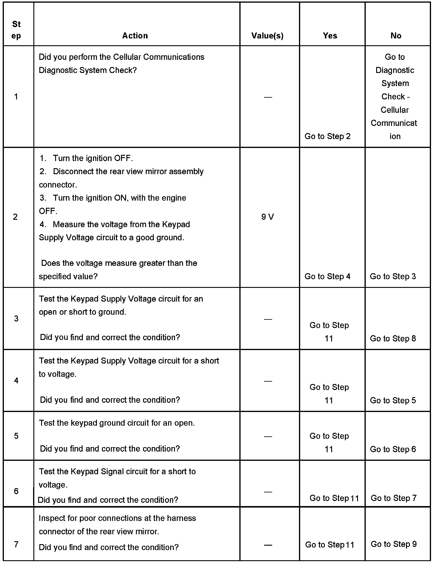 The number below refers to the step number on the diagnostic table.