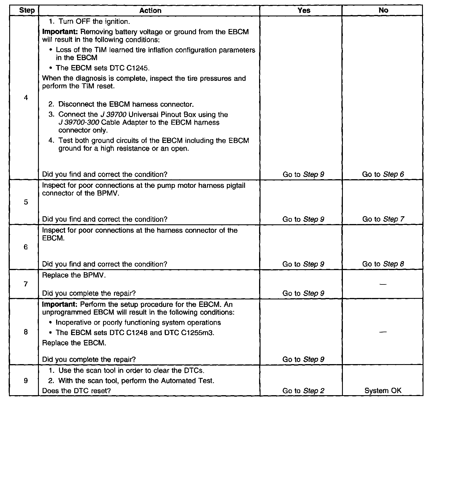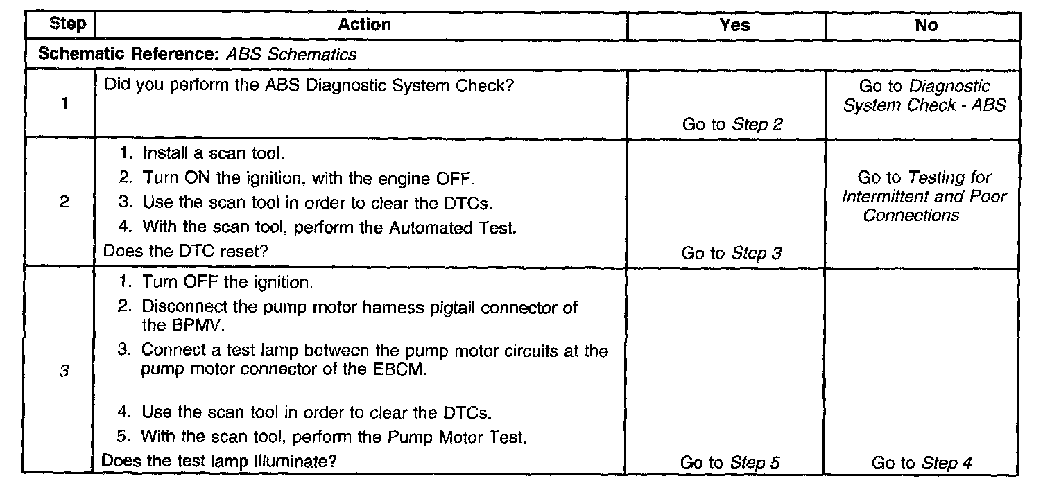 3. Tests the ability of the EBCM to control the pump motor. If the test lamp illuminates, the pump motor circuit within the EBCM is good.