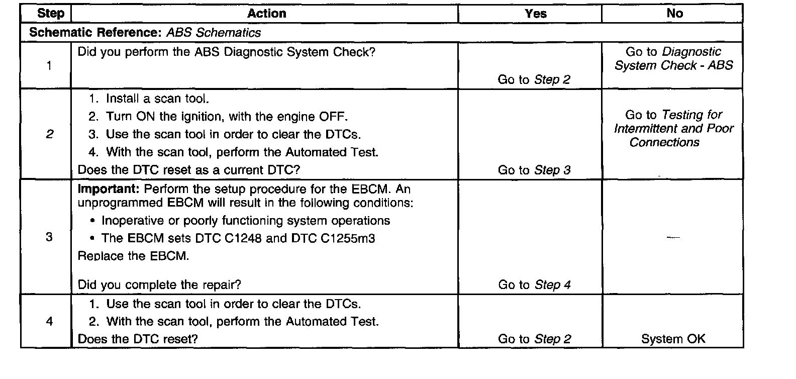 The solenoid valve circuit is internal to the EBCM. The solenoid valve circuit is not diagnosable external to the EBCM. The DTC sets when there is a malfunction in the solenoid circuit internal to the EBCM.