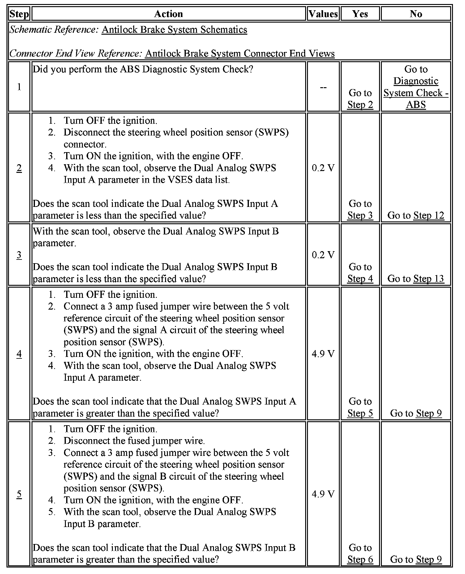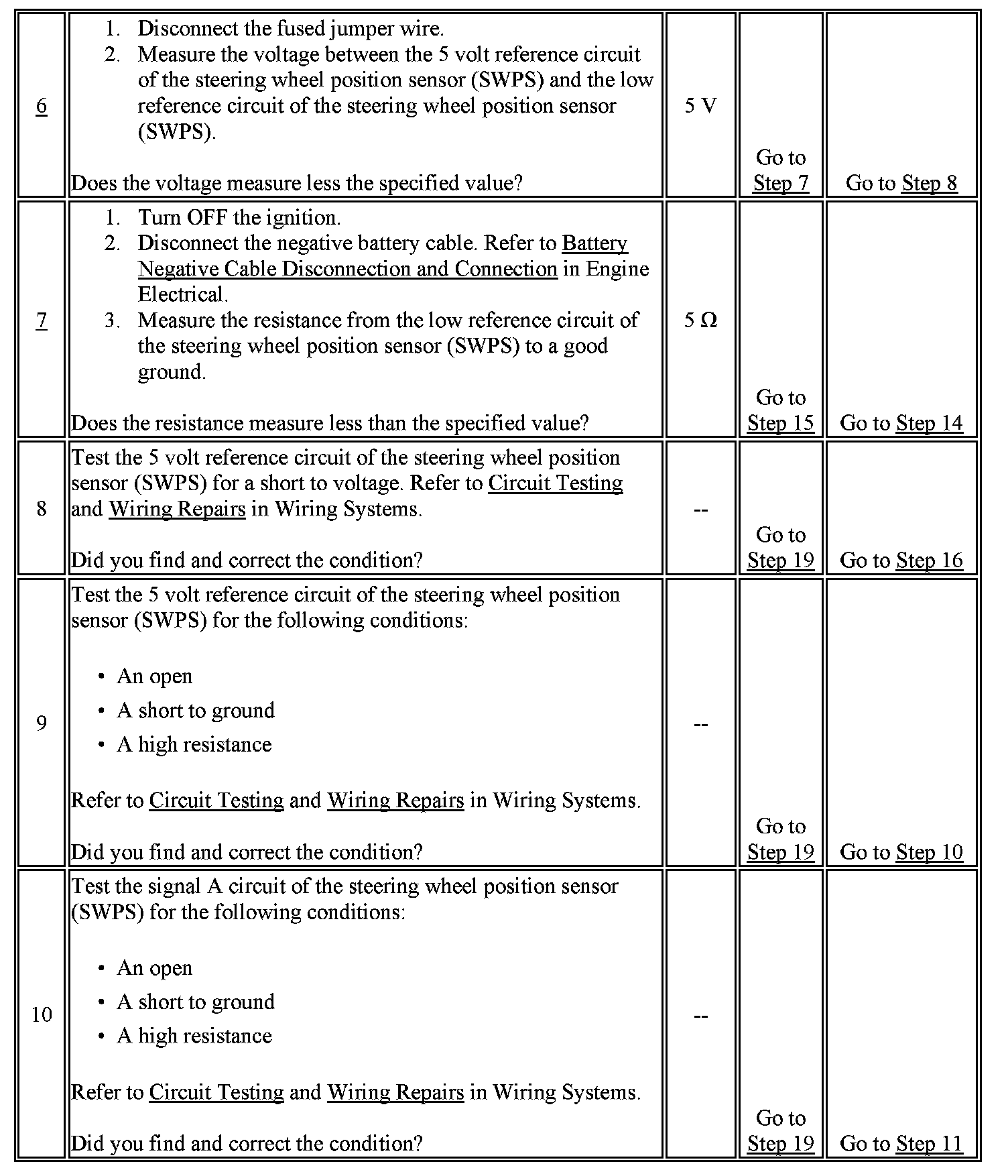 2. Tests for the proper operation of the steering wheel position signal A circuit in the low voltage range.