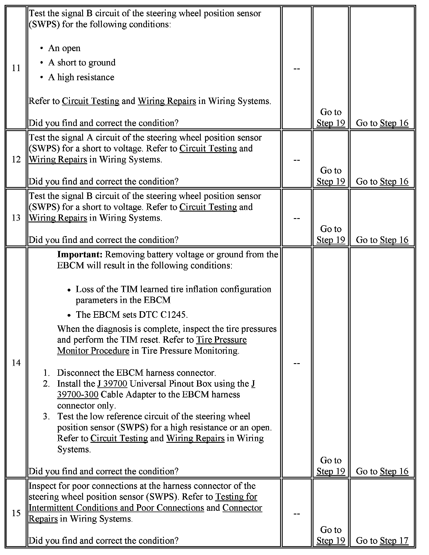 3. Tests for the proper operation of the steering wheel position signal B circuit in the low voltage range.