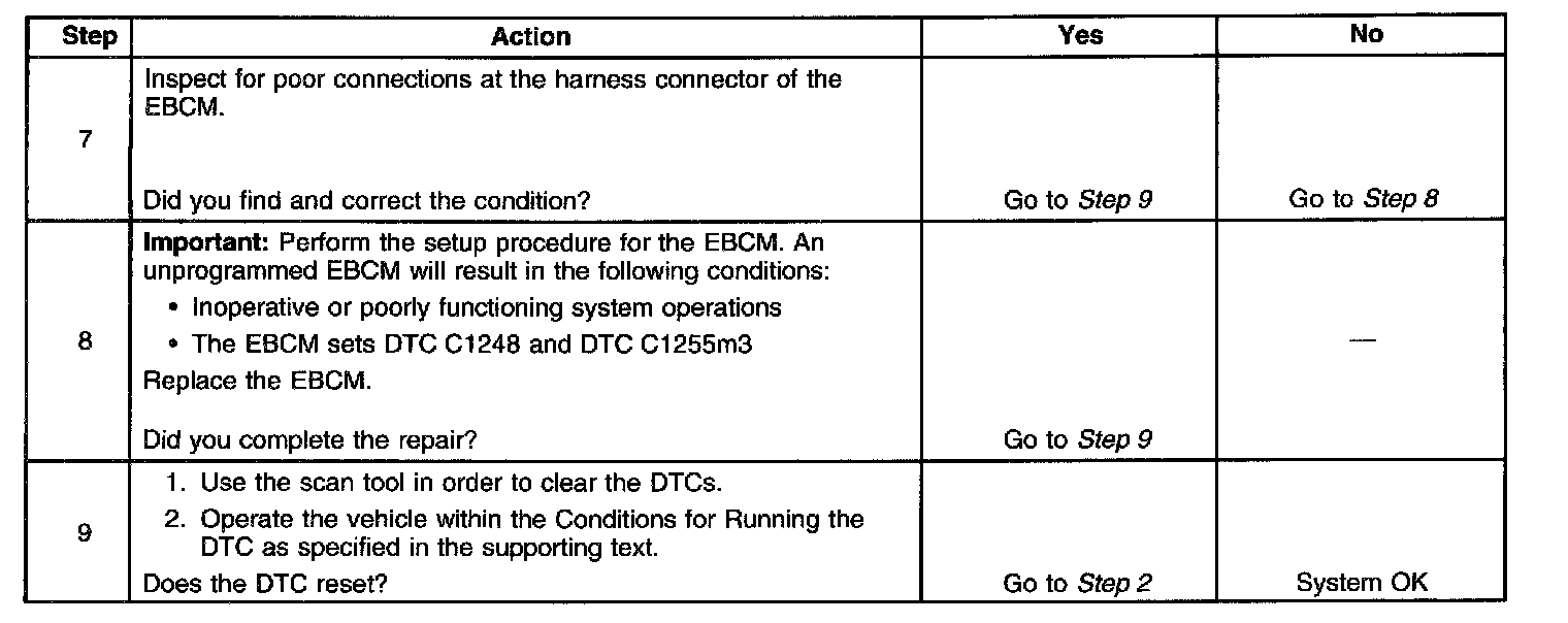 ^ The EBCM automatically clears the history DTC when a current DTC is not detected in 100 consecutive drive cycles.