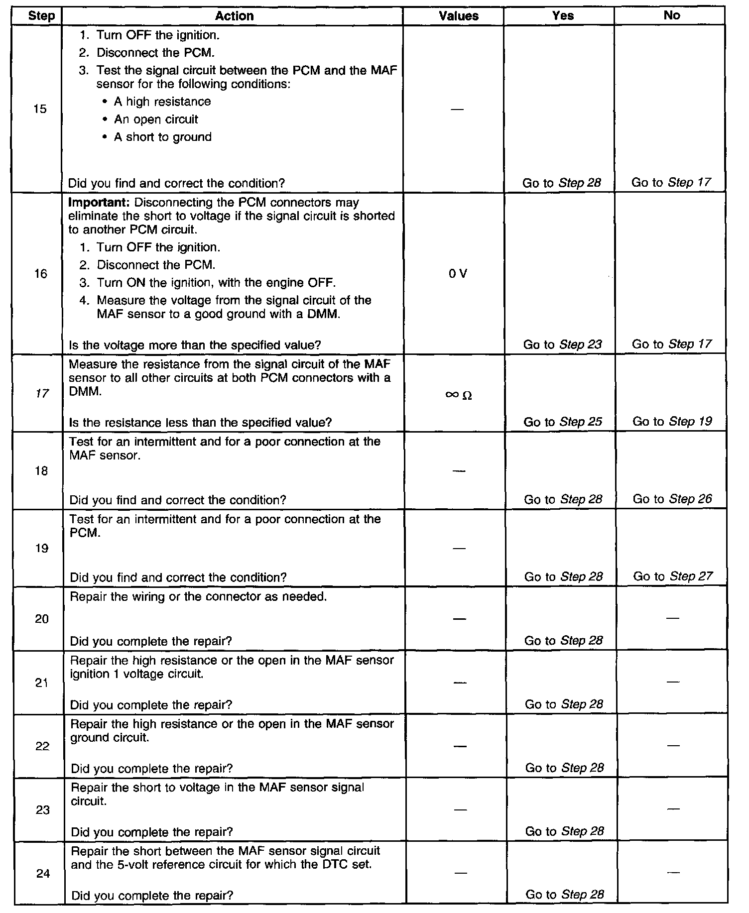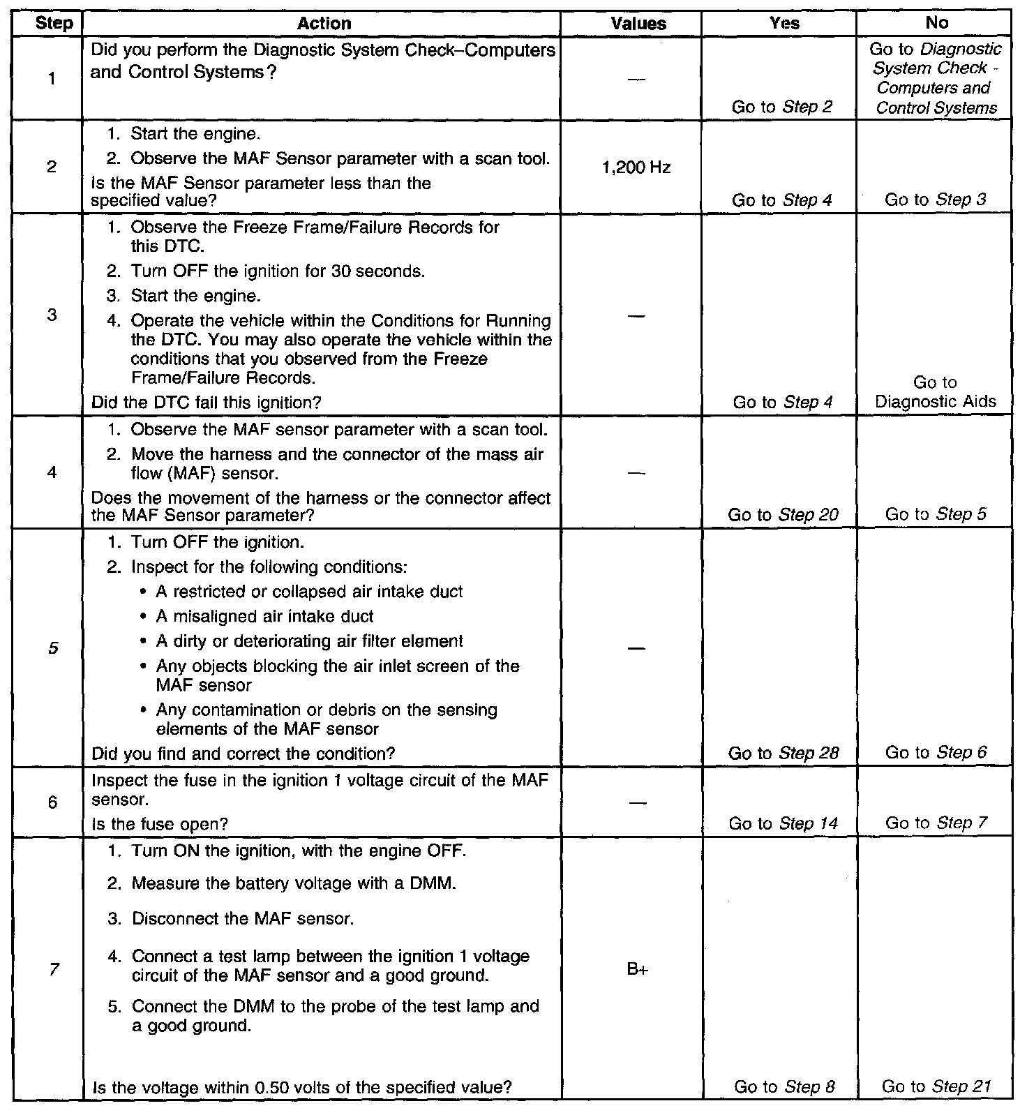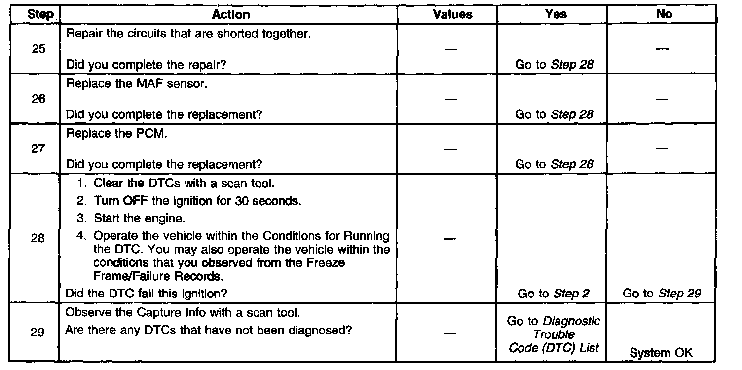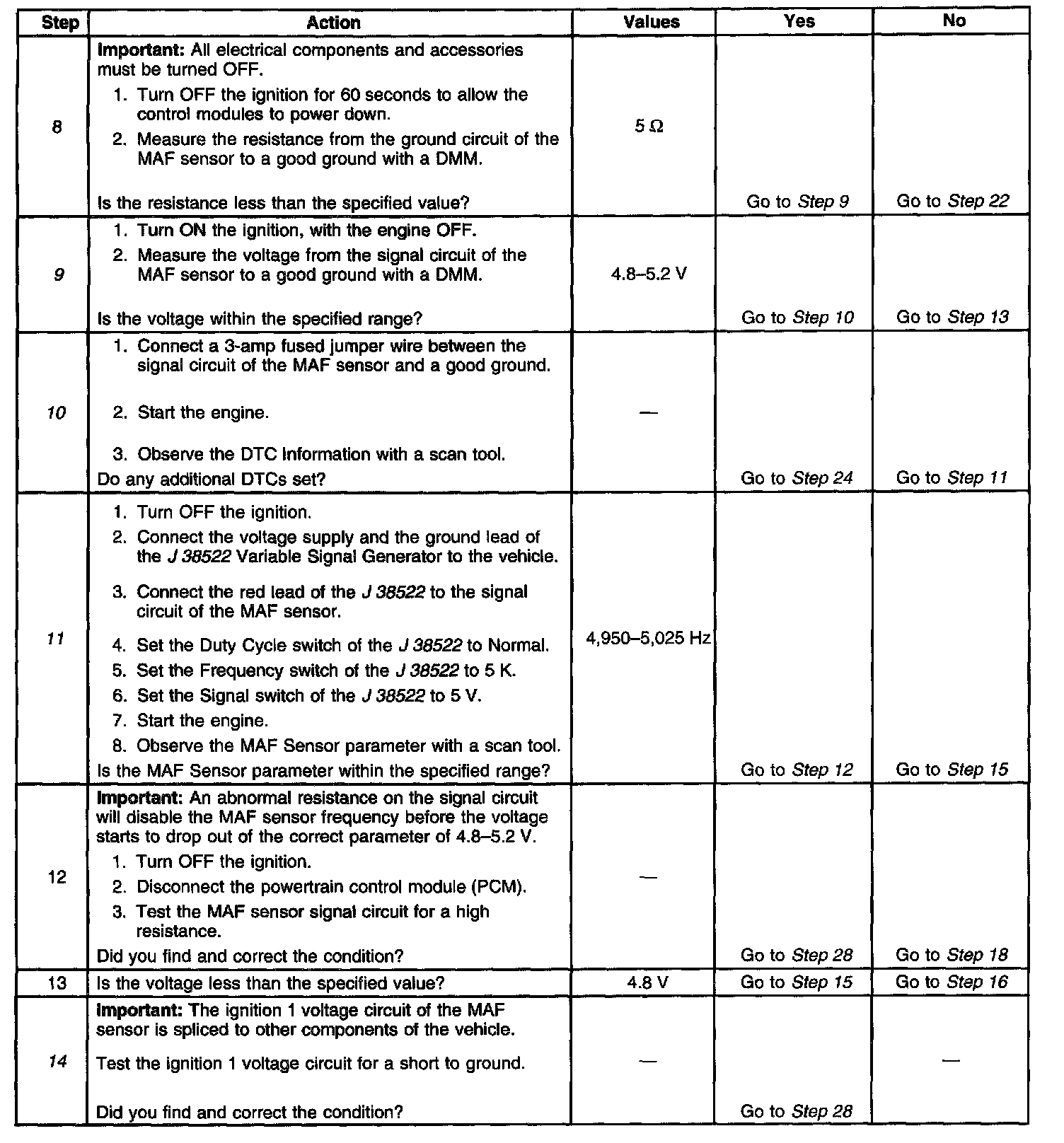 10. This step tests the signal circuit of the MAF sensor for a short to another 5-volt reference circuit.
