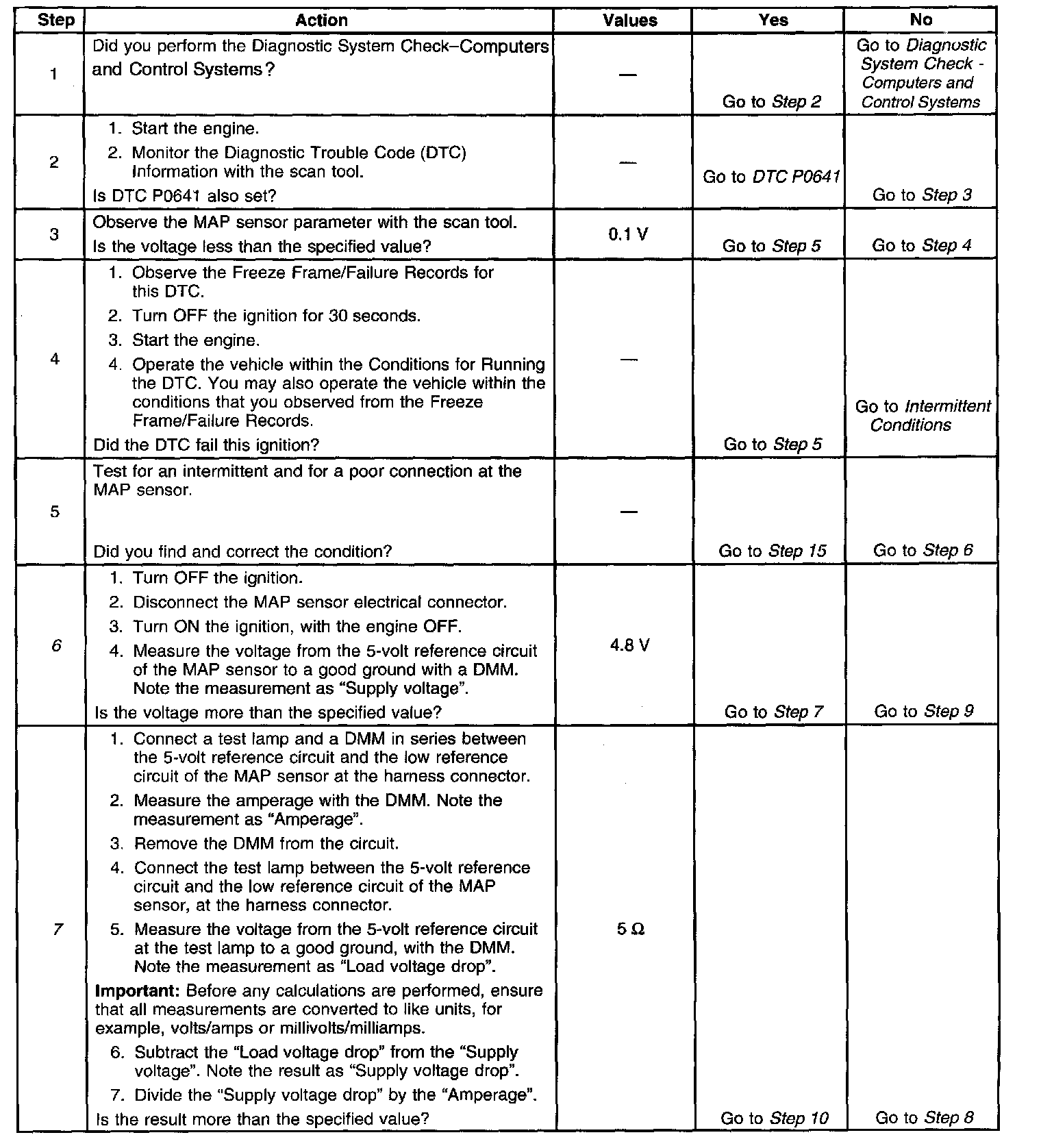 The numbers below refer to the step numbers on the diagnostic table.