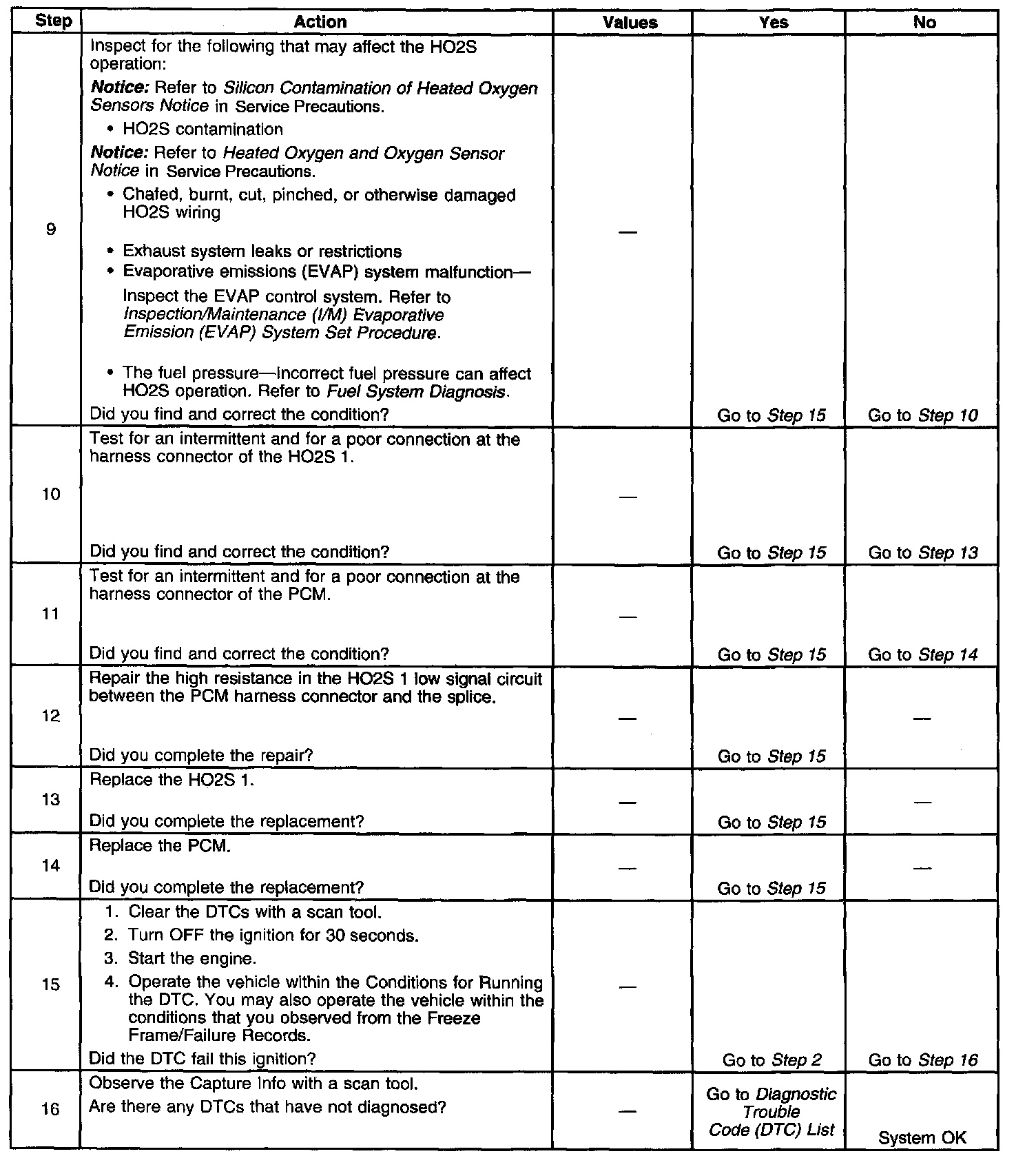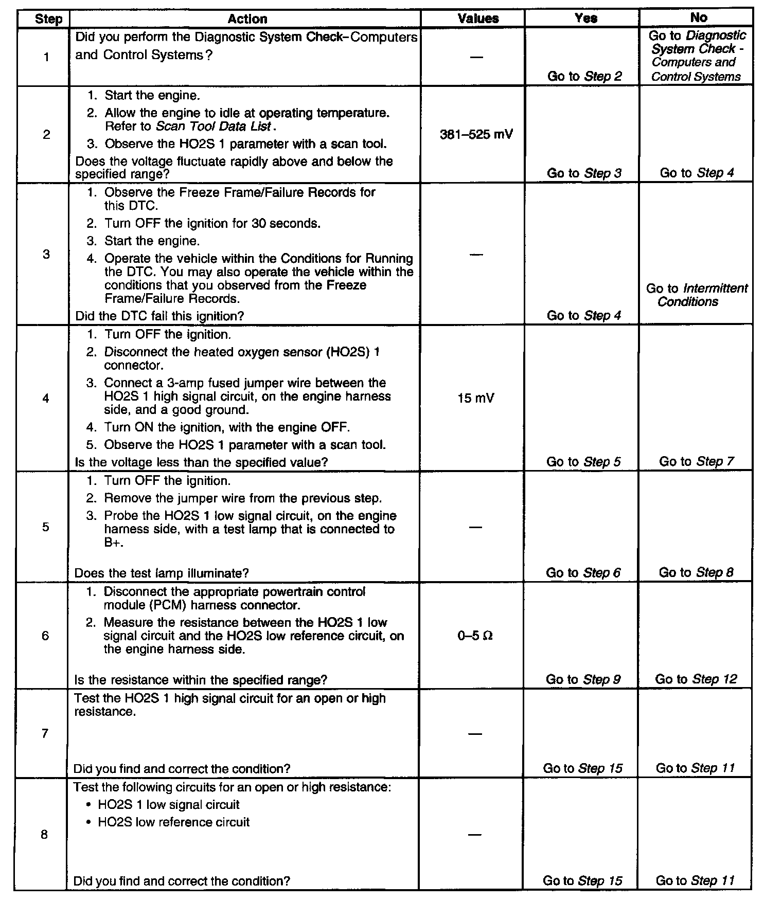 The PCM detects that the HO2S 1 signal voltage remains between 382-525 mV for more than 30 seconds.