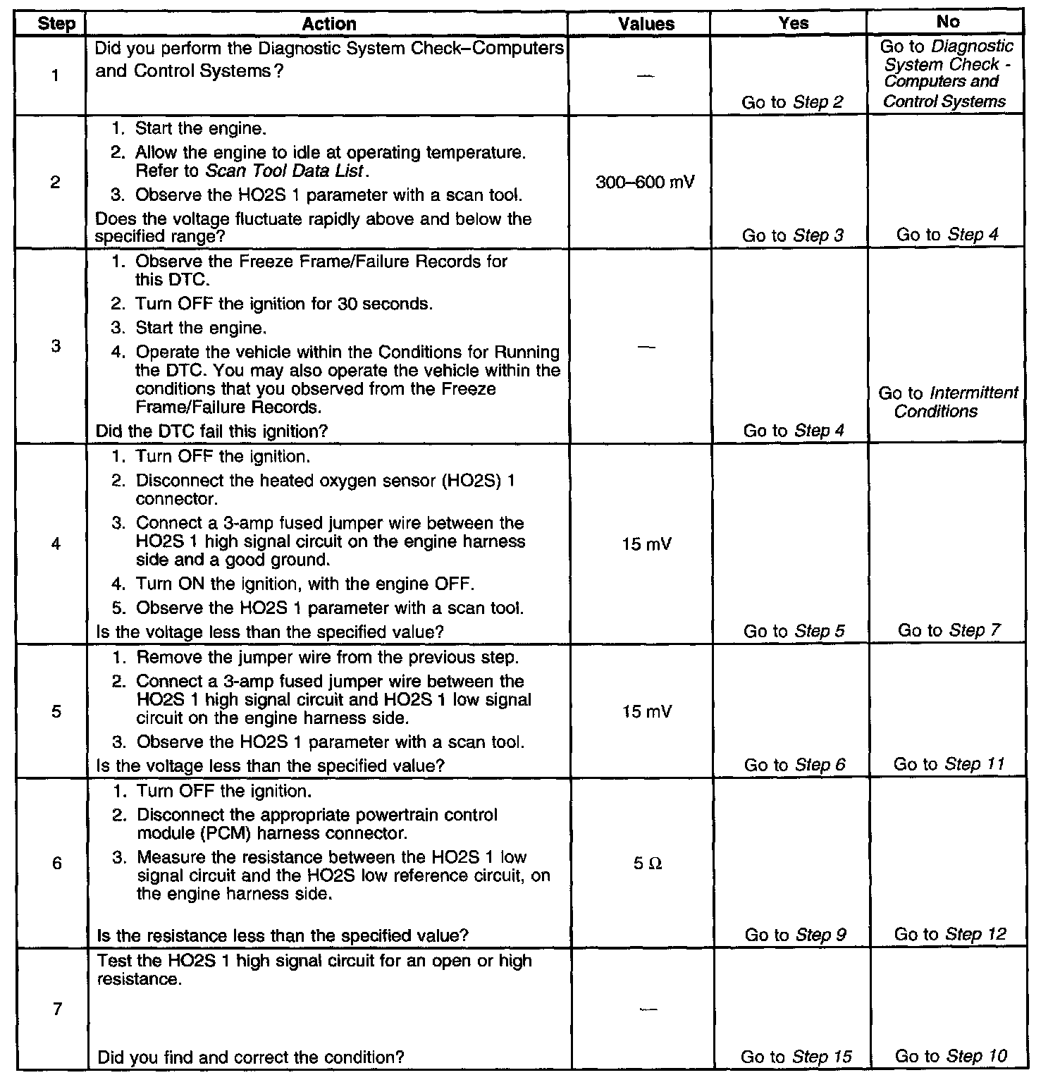 - An HO2S 1 high signal circuit