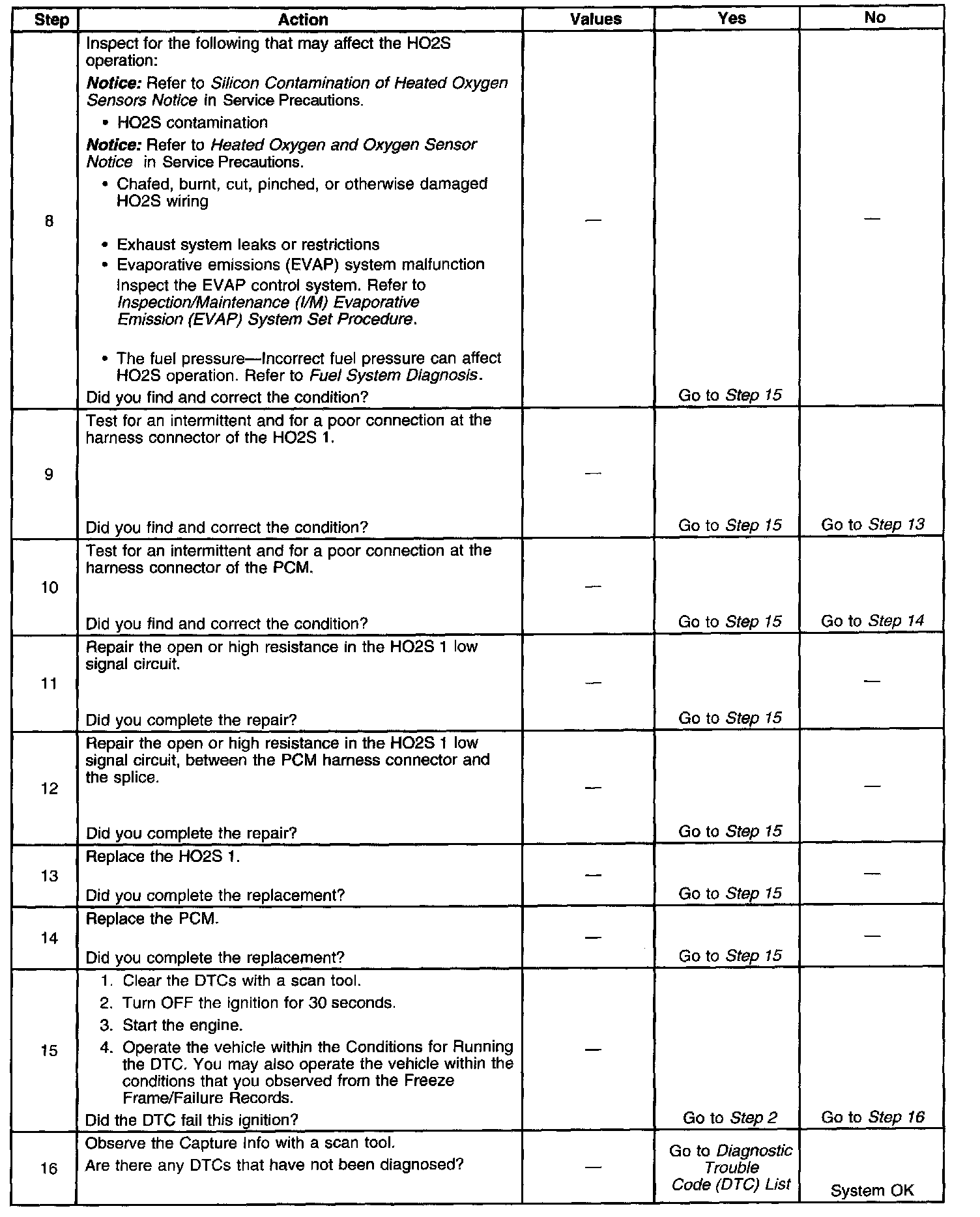 - A current DTC, Last Test Failed, clears when the diagnostic runs and passes.