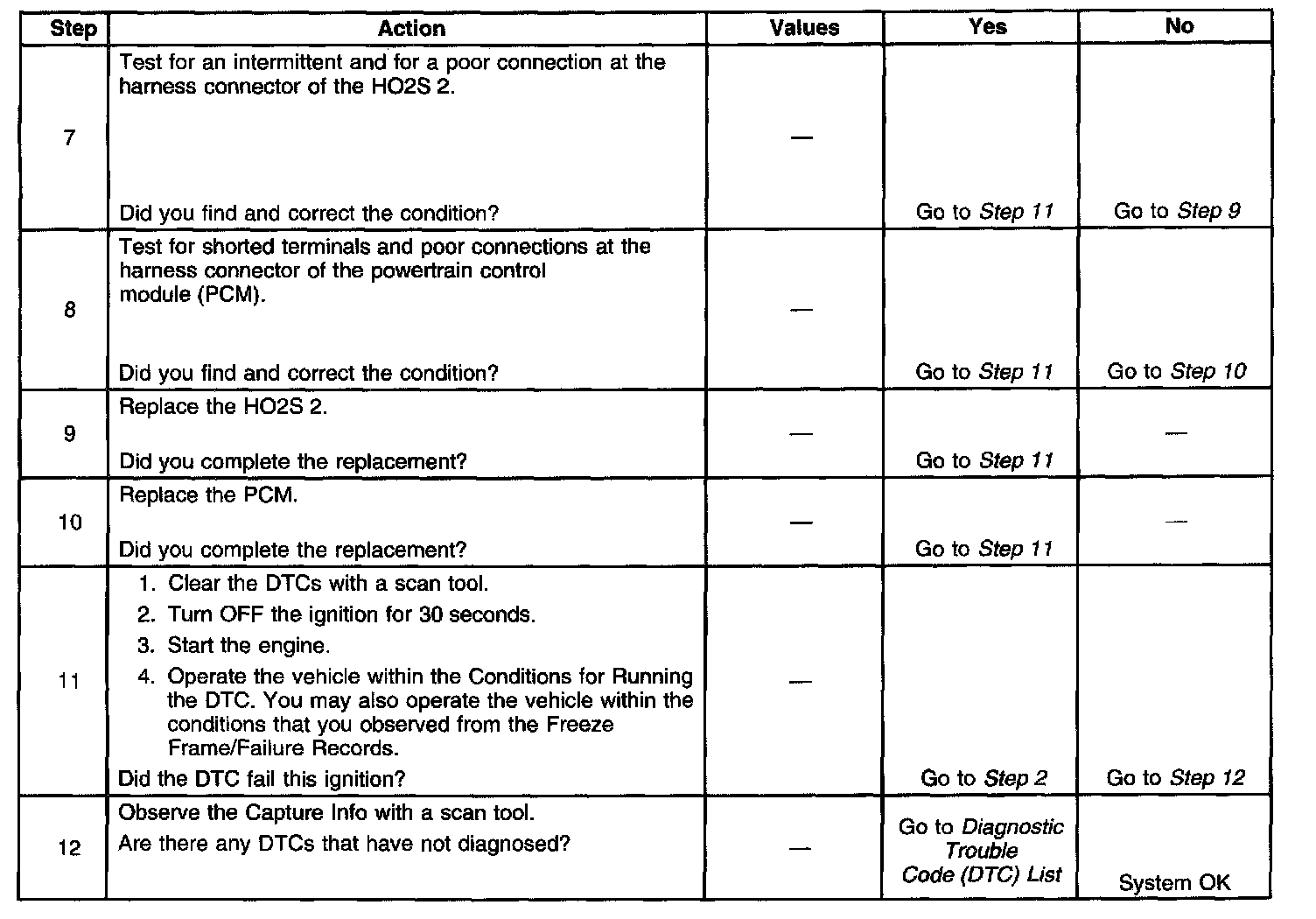 - A current DTC, Last Test Failed, clears when the diagnostic runs and passes.