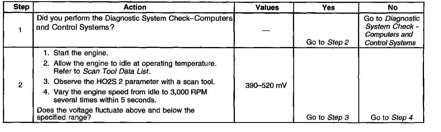 The PCM detects that the HO2S 2 signal voltage remains between 390-520 mV for more than 100 seconds.