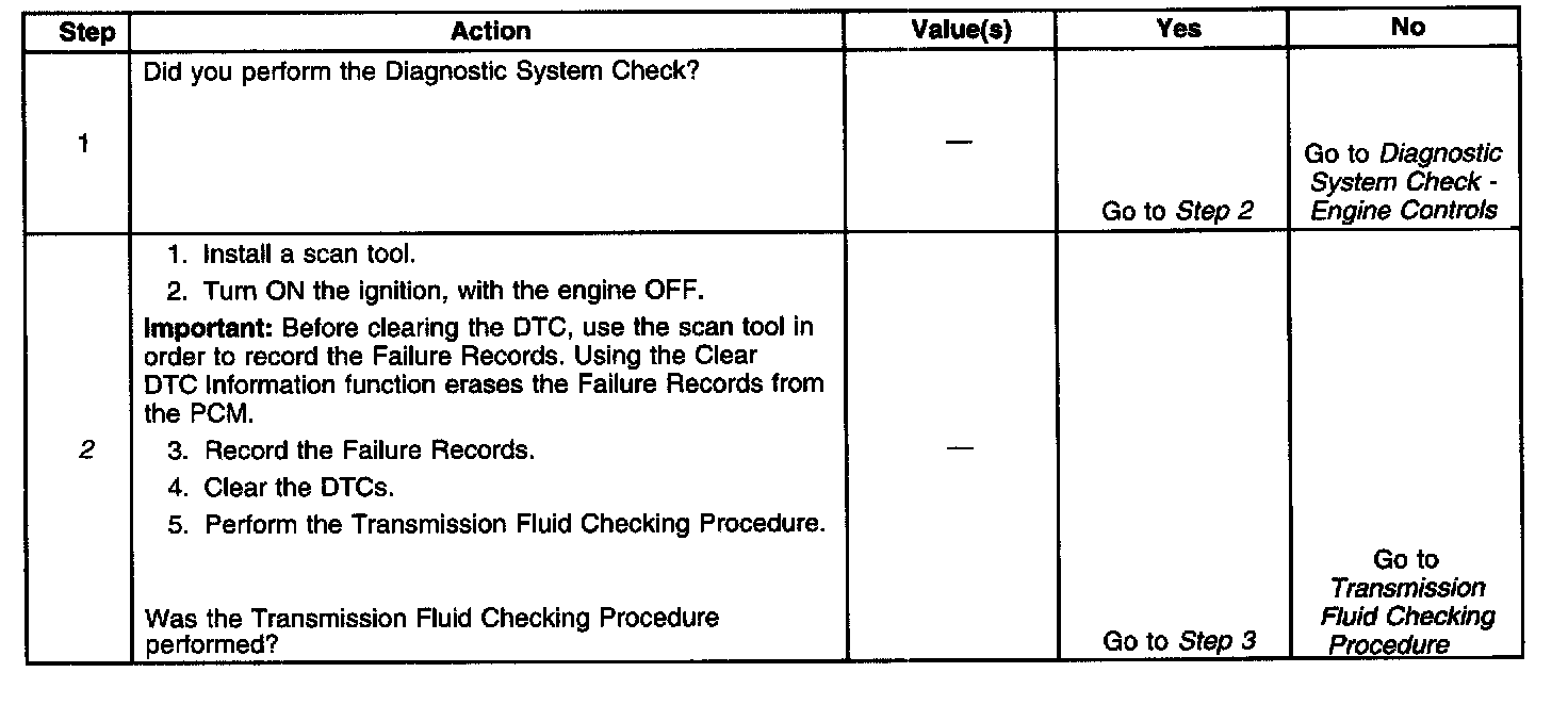 No TFT sensor DTC P0711, P0712 or P0713.