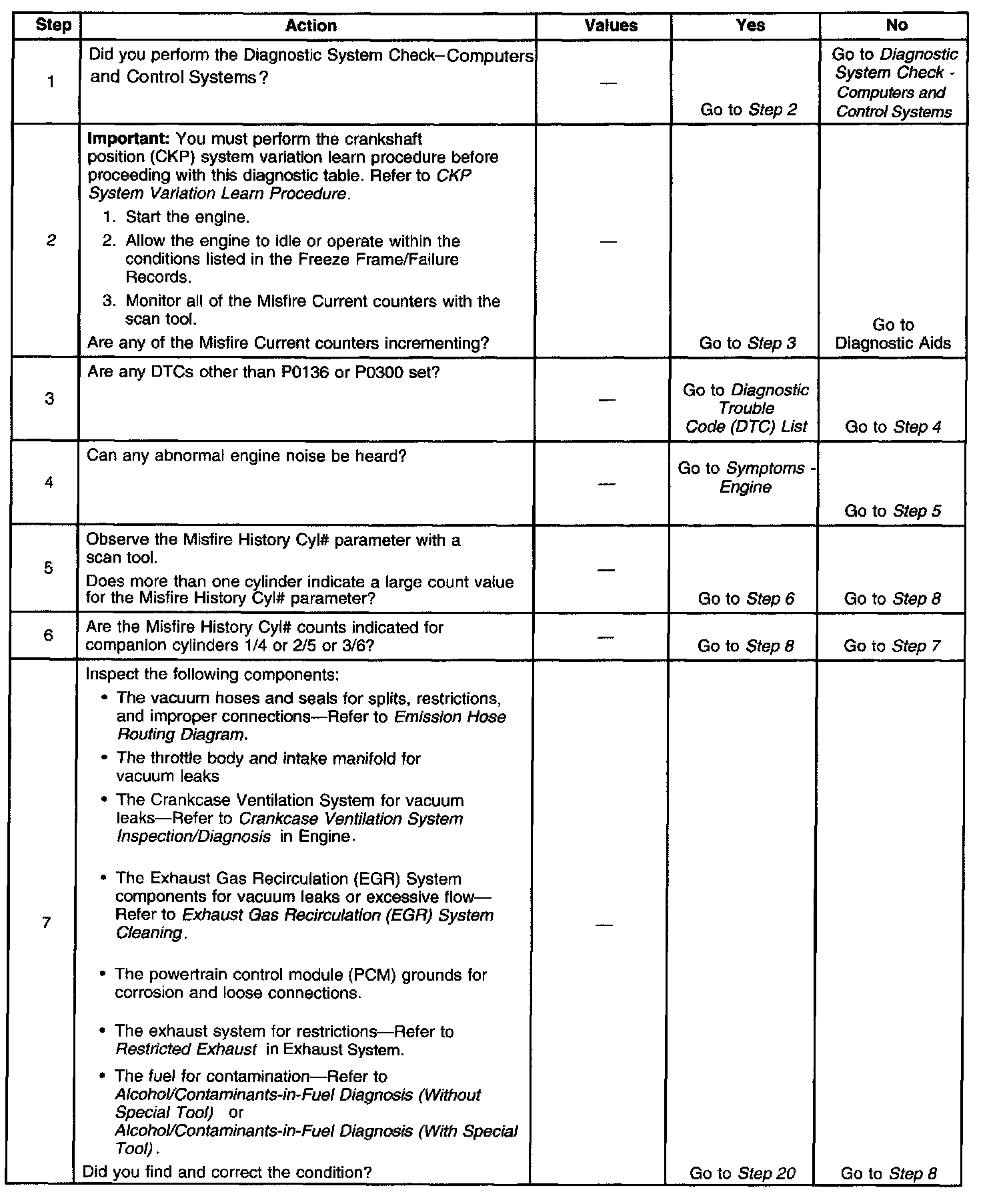 2. If the actual CKP variation values are not within the learned values, the misfire counters may increment.