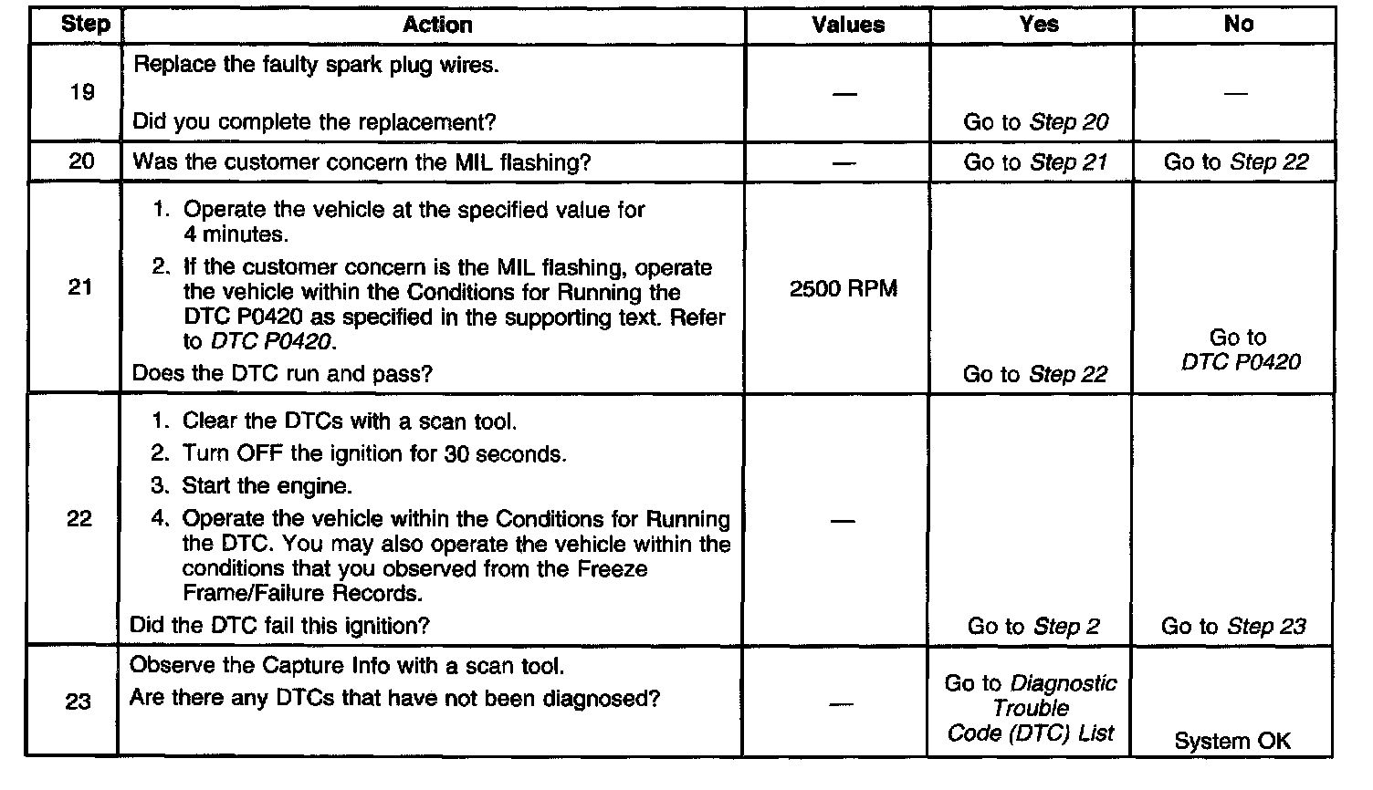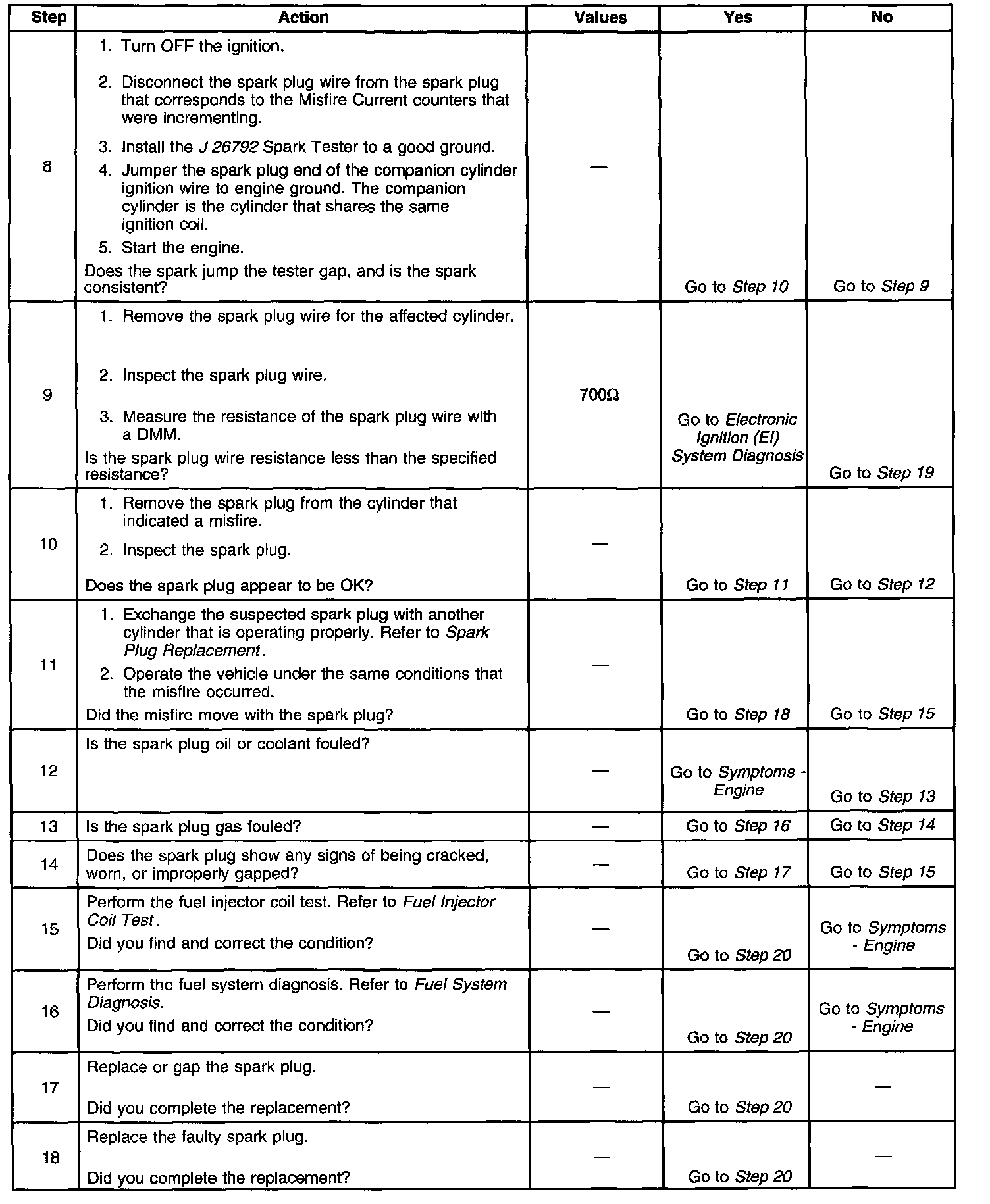 The number below refers to the step number on the diagnostic table.