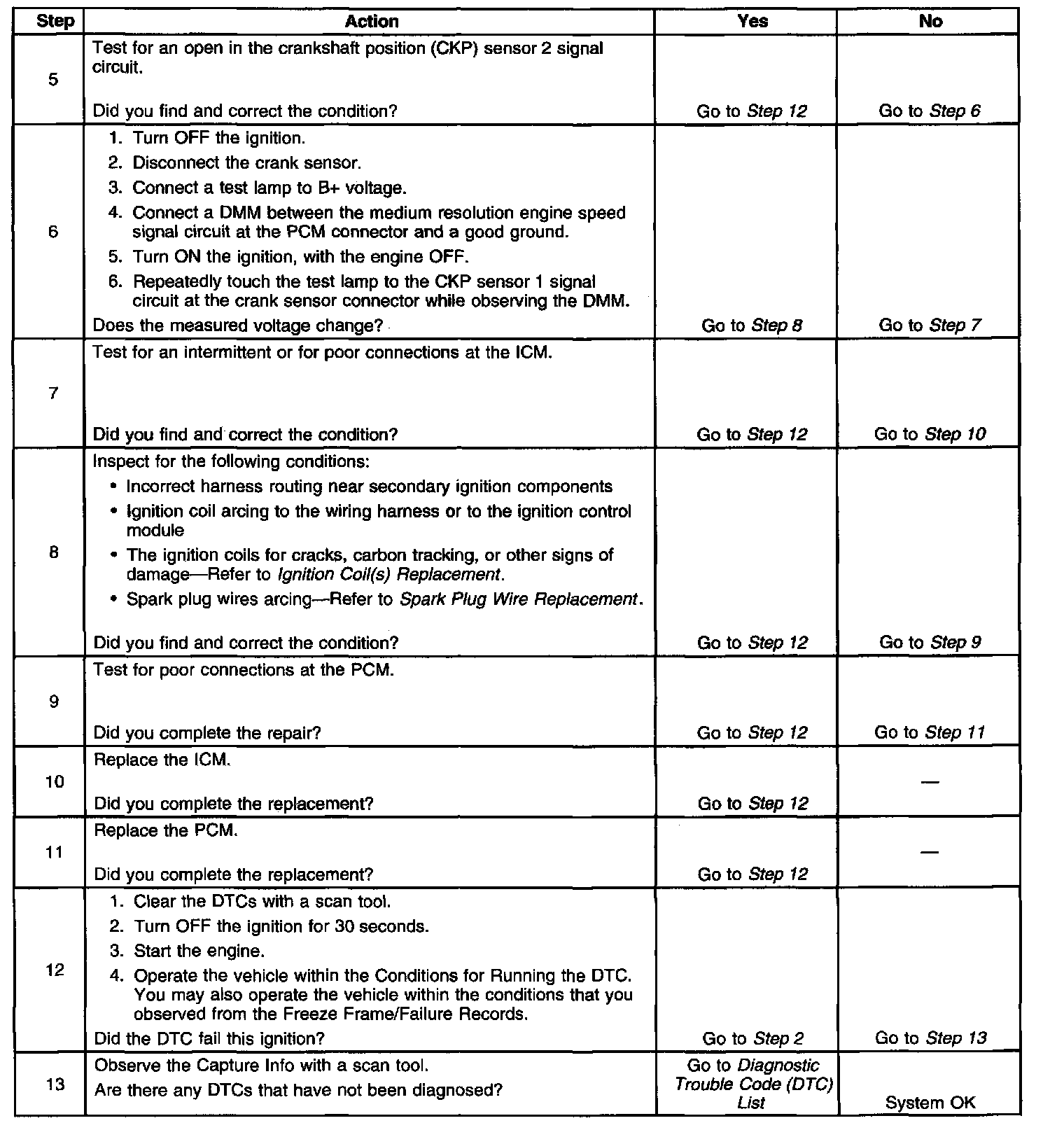 The CKP sensor shares power supply and low reference circuits with the camshaft position (CMP) sensor. If the PCM detects no 18X reference pulses in one engine cycle, DTC P0336 sets.