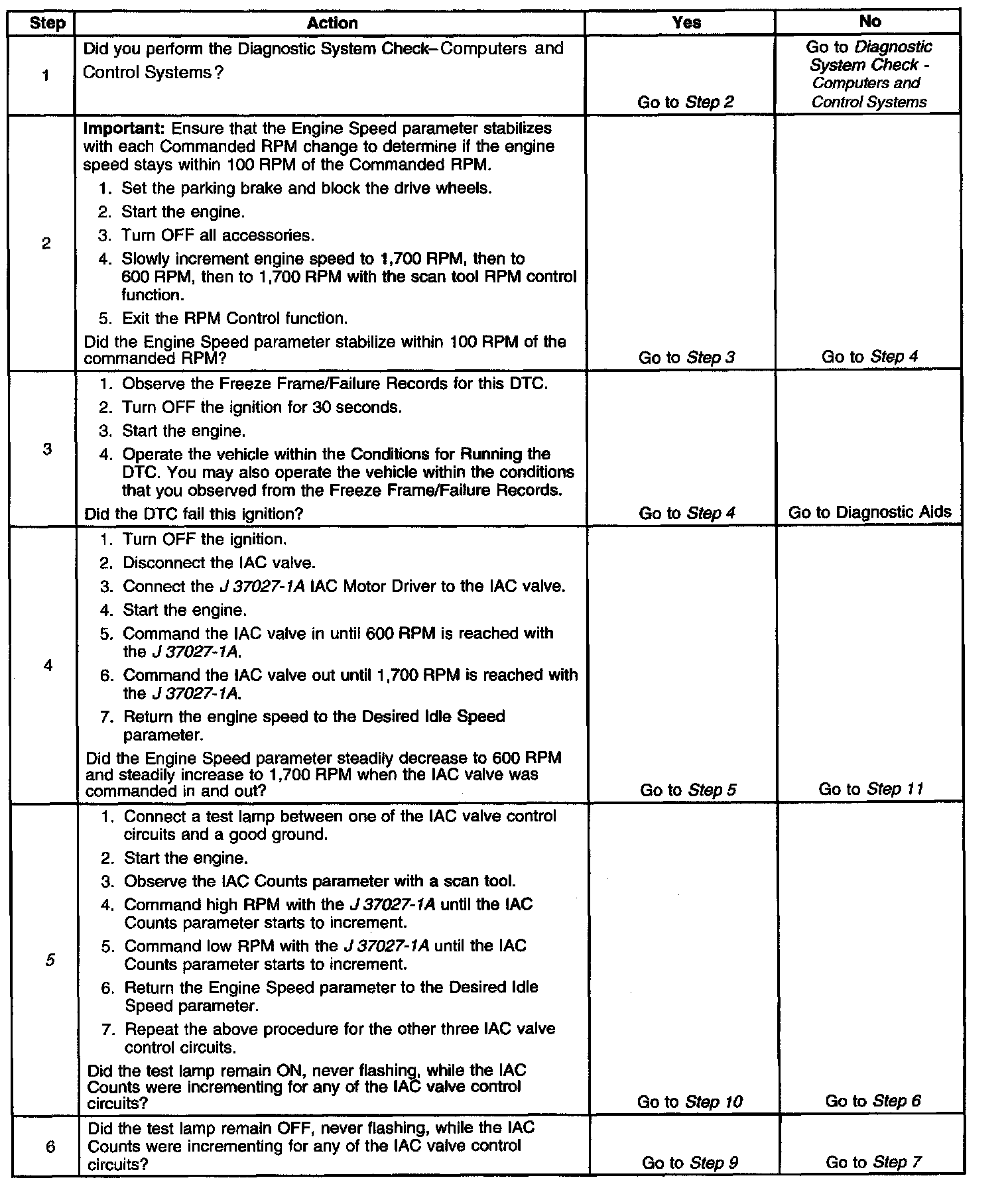 5. This test will determine the ability of the PCM and the IAC valve control circuits to control the IAC valve.