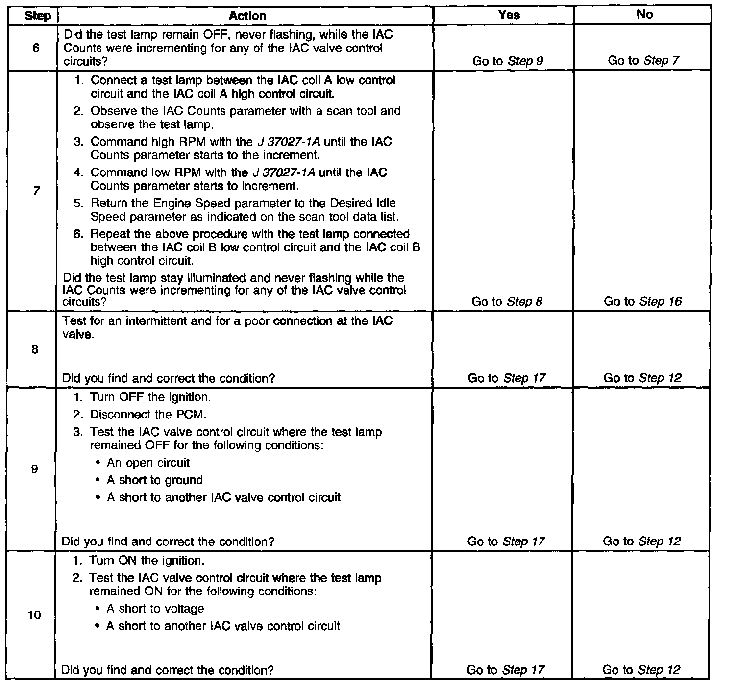 5. This test will determine the ability of the PCM and IAC valve control circuits to control the IAC valve.
