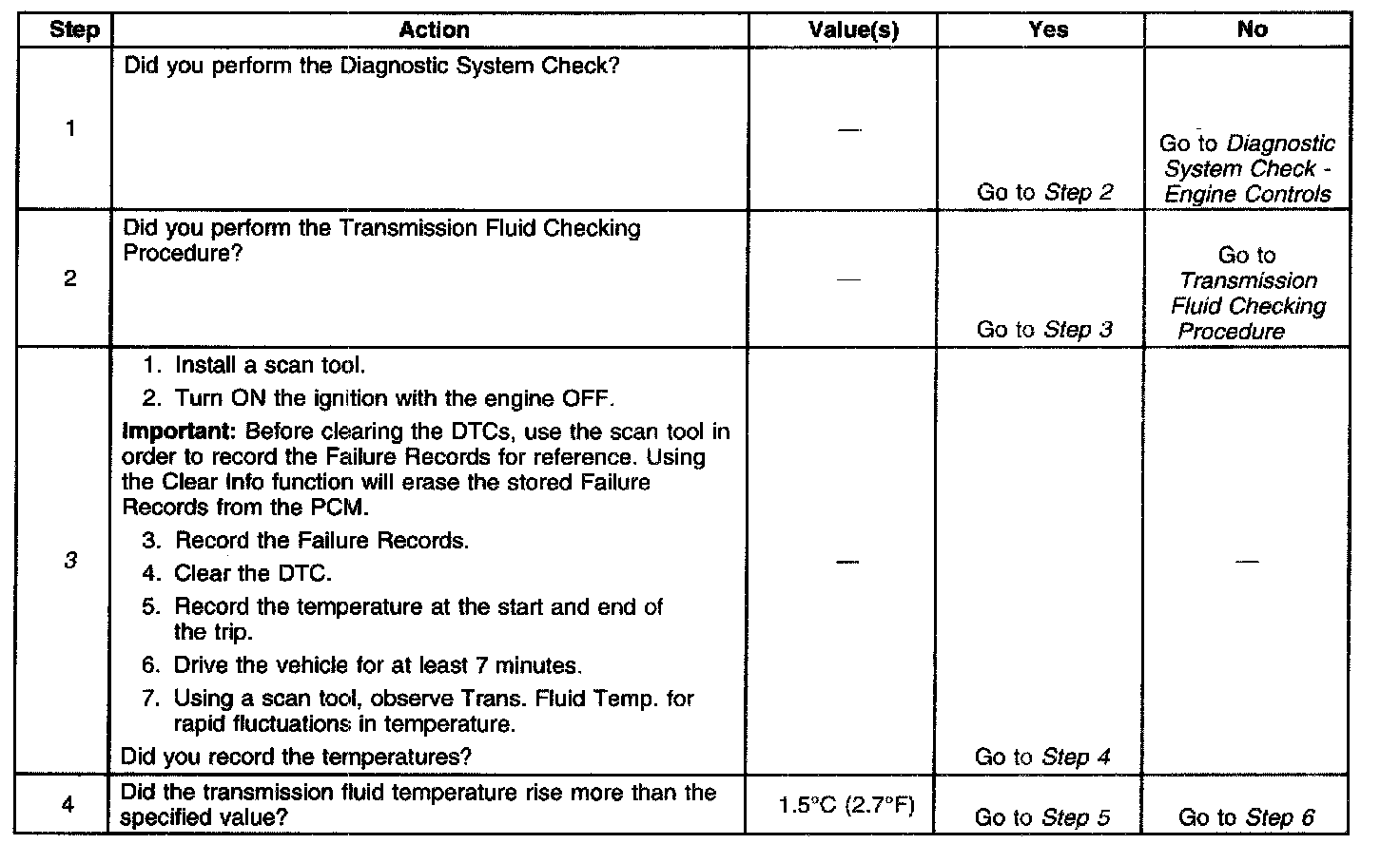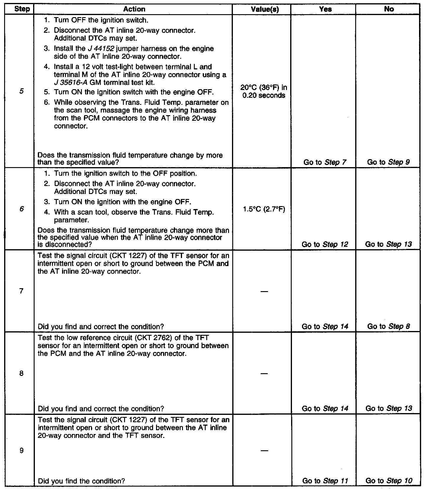 6. This step determines if a condition exists with the PCM or TFT sensor.
