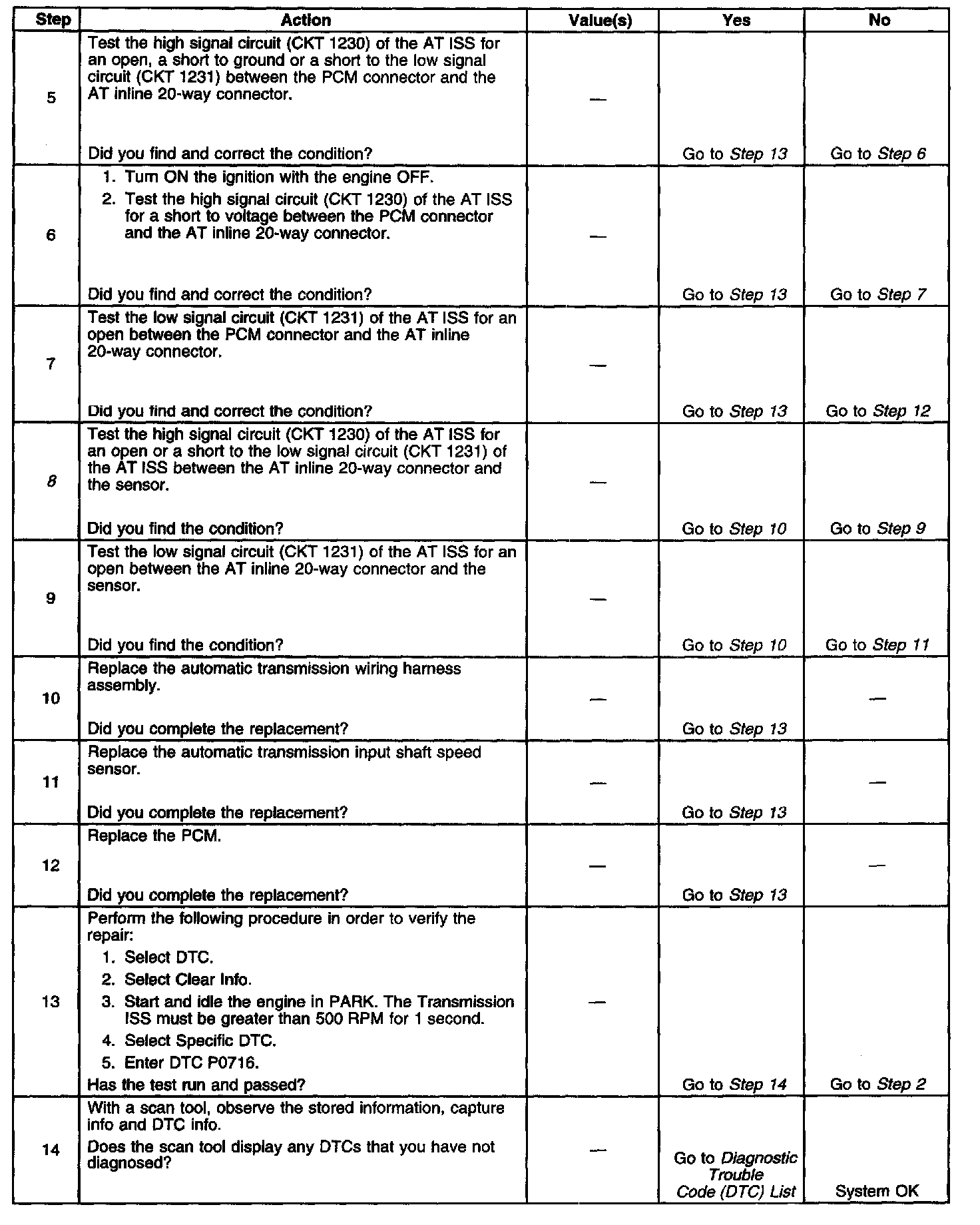 If the PCM detects an unrealistically large change in the AT ISS sensor high signal in a short period of time, then DTC P0716 sets. DTC P0716 is a type B DTC.