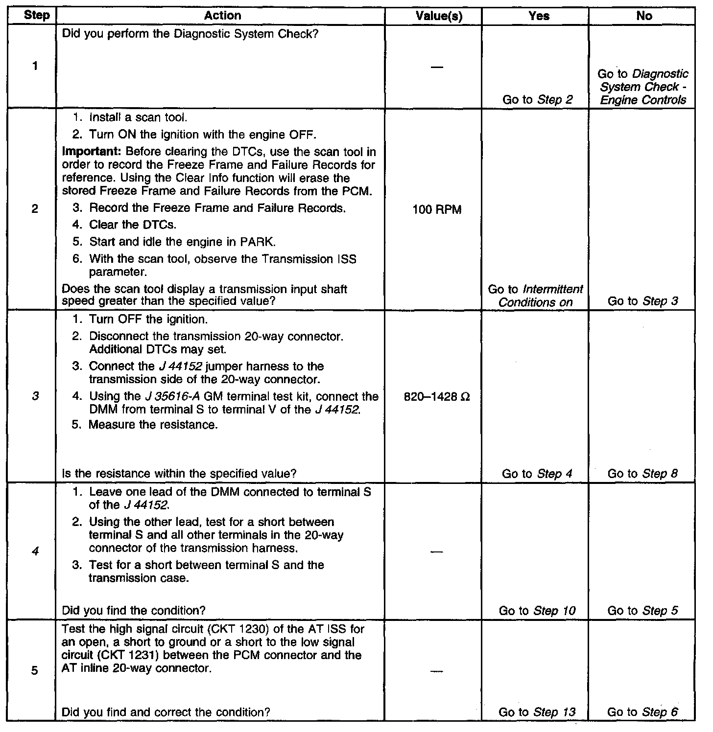 There is a fixed air gap between the sensor and the teeth on the sensor reluctor wheel. The AT ISS sensor input is used by the PCM in order to control line pressure, TCC apply and release and transmission shift patterns. This sensor is also used to calculate the gear ratios and TCC slippage.