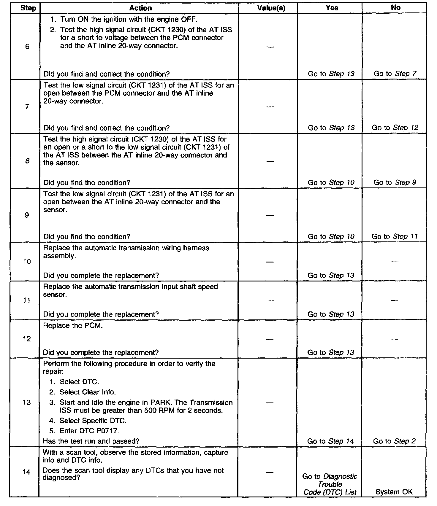 If the PCM detects a low input speed while the vehicle and engine speeds are high, then DTC P0717 sets. DTC P0717 is a type B DTC.