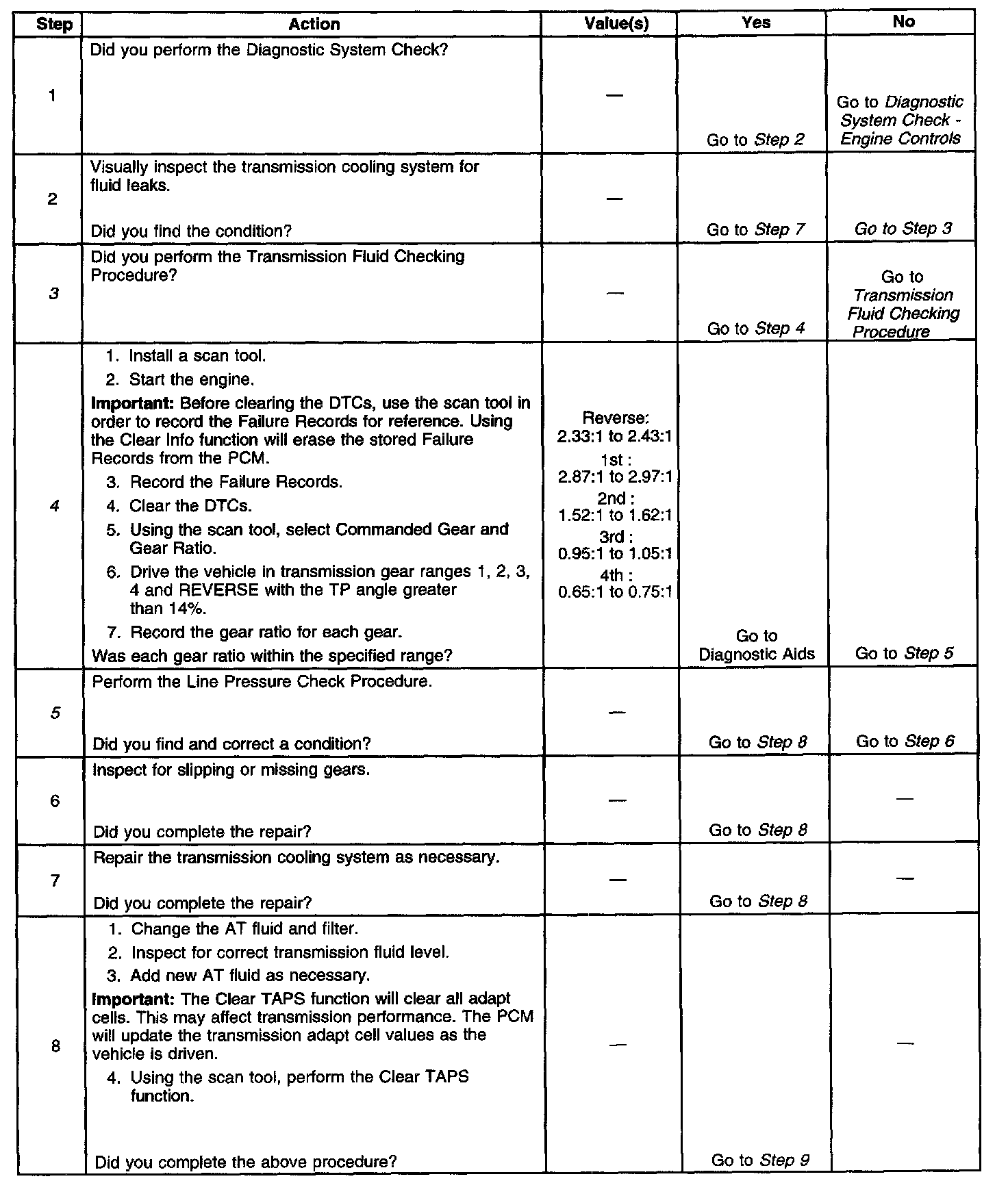 3. This step tests for low fluid level, which may cause slipping and result in an undefined gear ratio.