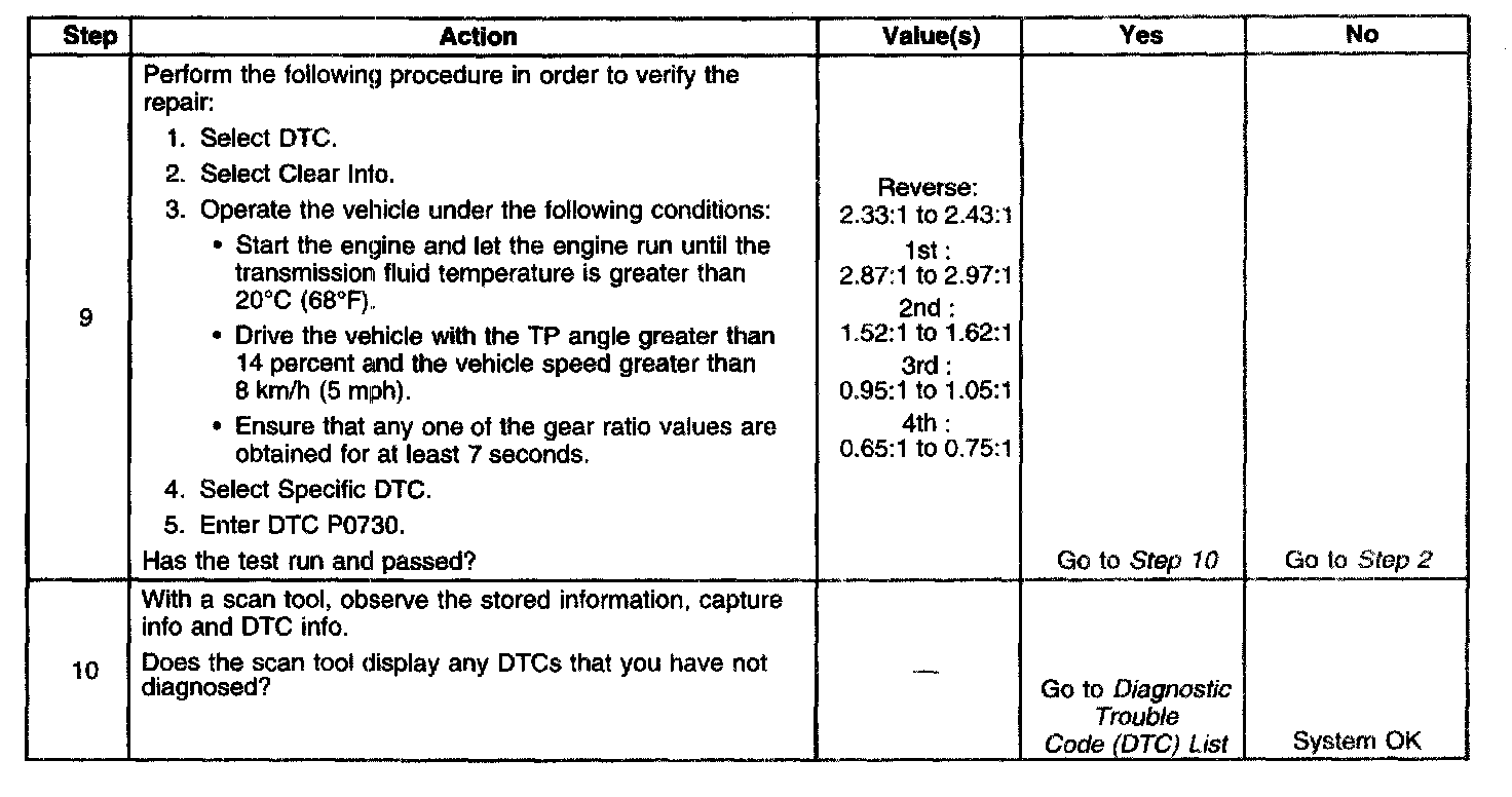 DTC P0730Steps 1-8: