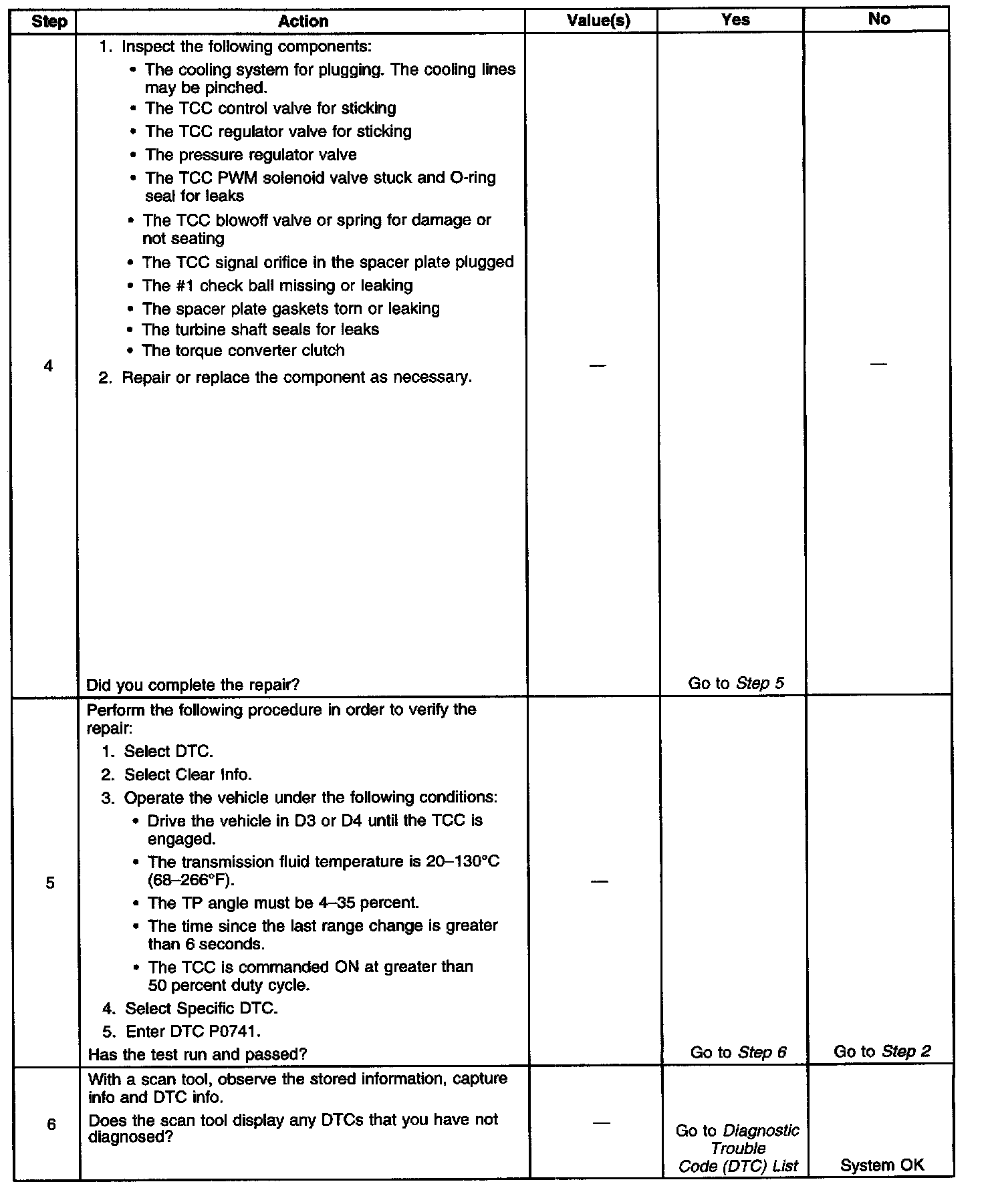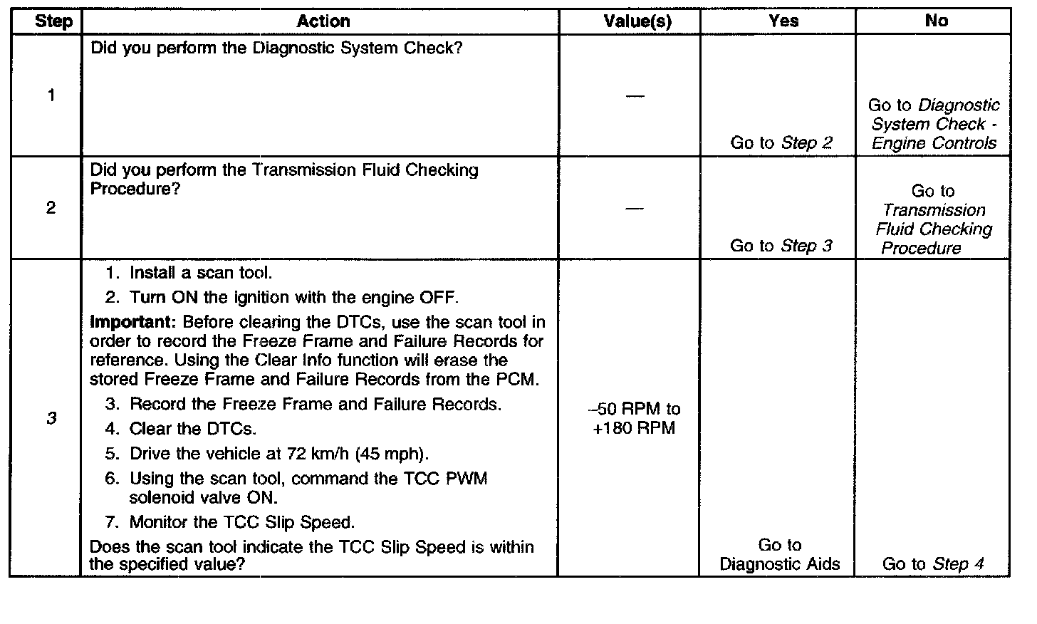3. This step verifies that the TCC engages when commanded ON by the scan tool.