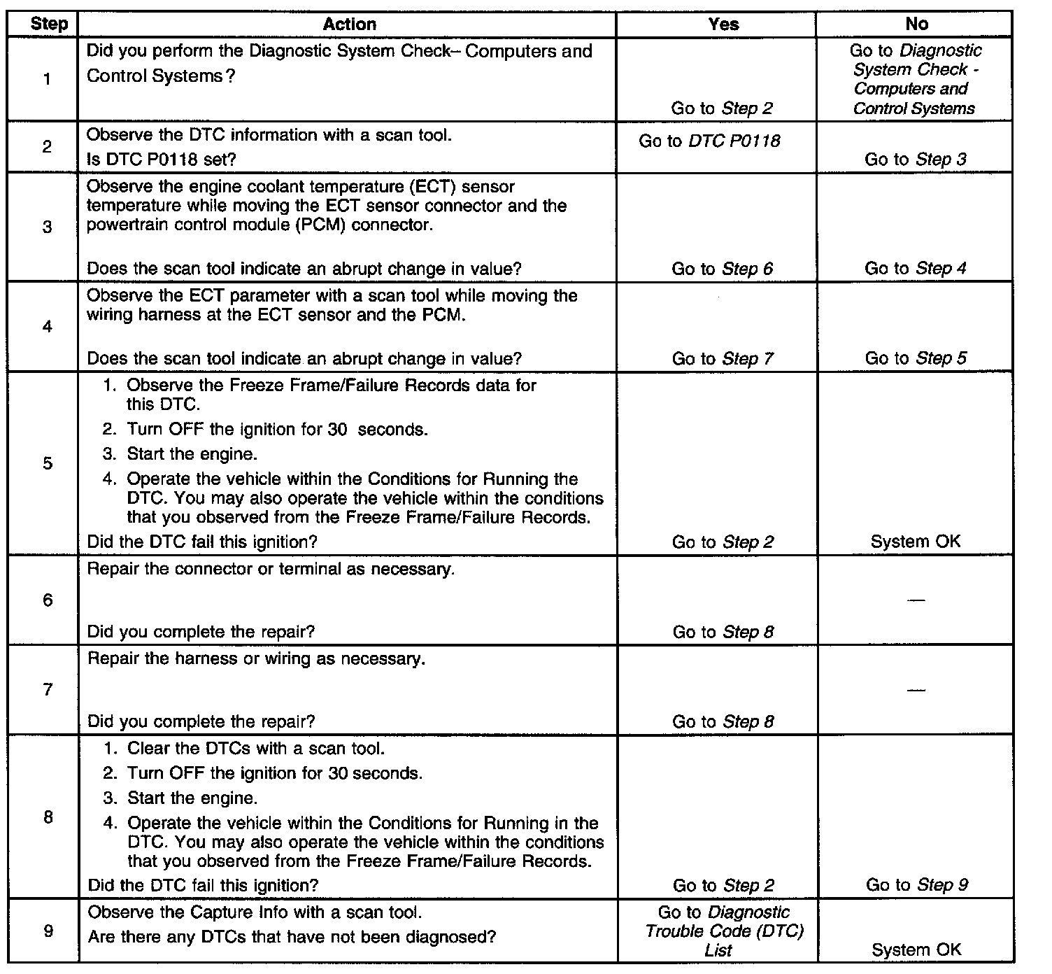 - An intermittent open or short to voltage in the ECT sensor signal circuit could result in a DTC P1115.