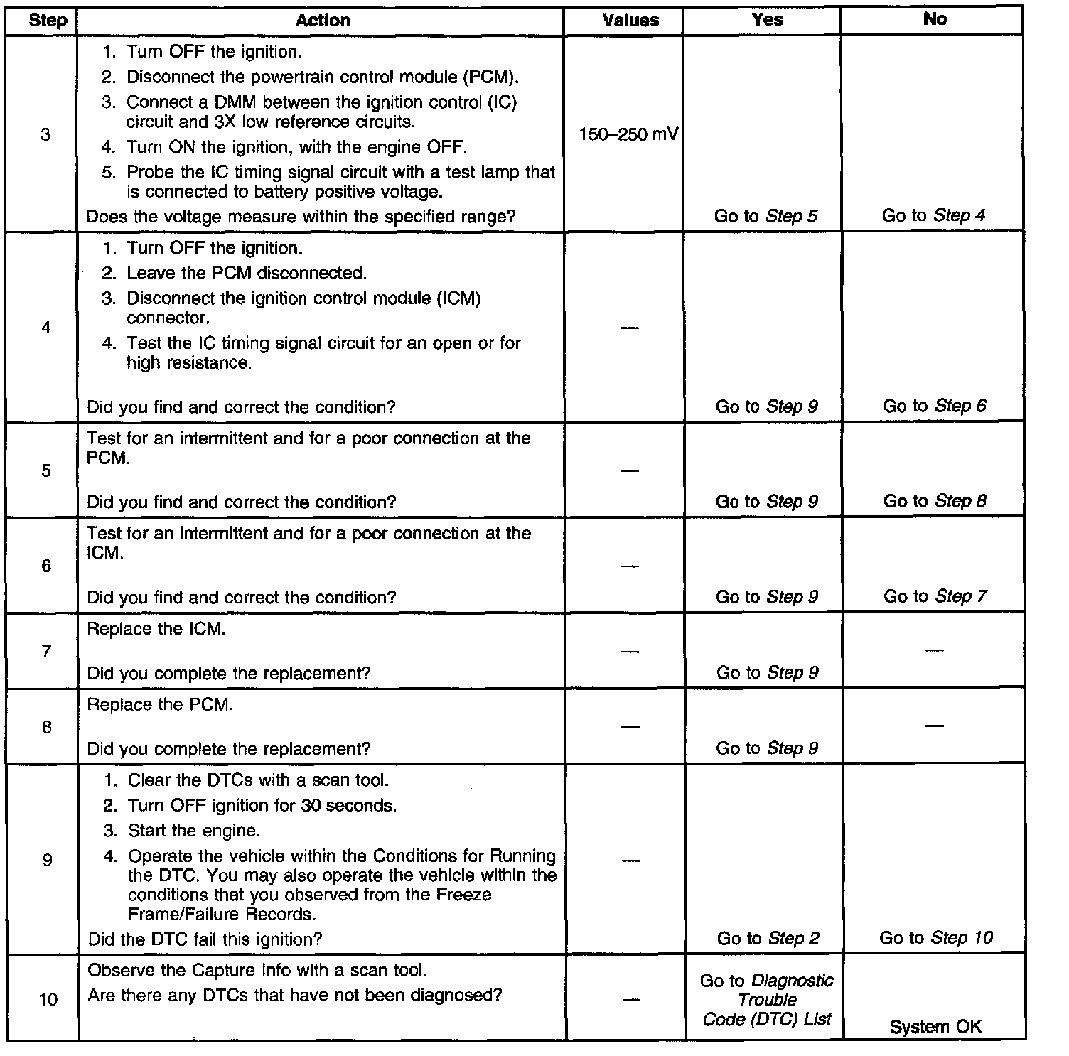 - The PCM detects an open circuit in the IC timing signal circuit.