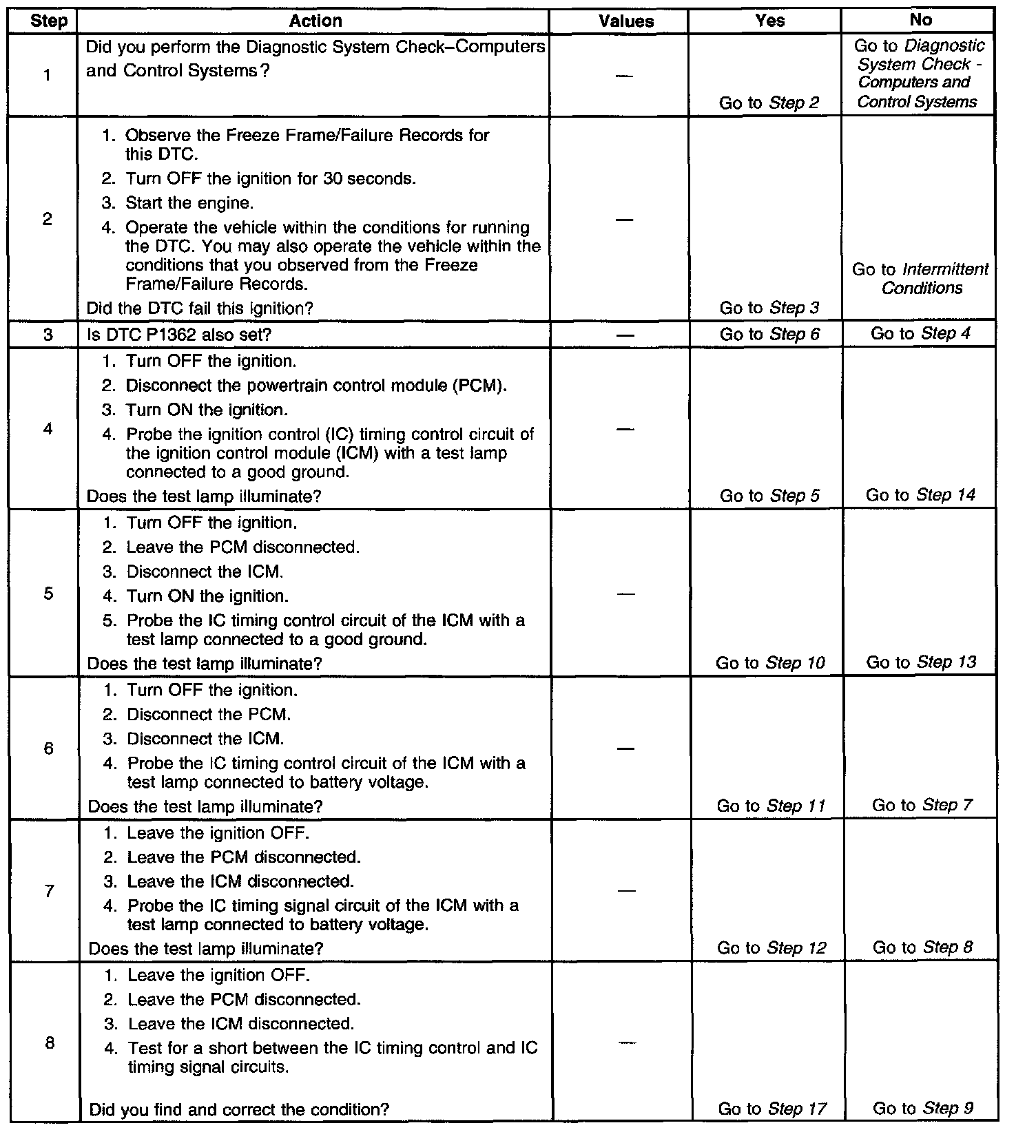 If the PCM does not detect IC pulses while IC mode spark advance is commanded, DTC 1361 sets.
