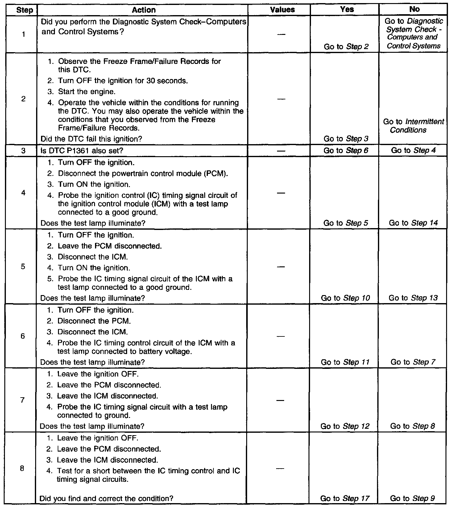 If the PCM detects a short to voltage in the IC timing signal circuit, DTC P1362 sets.