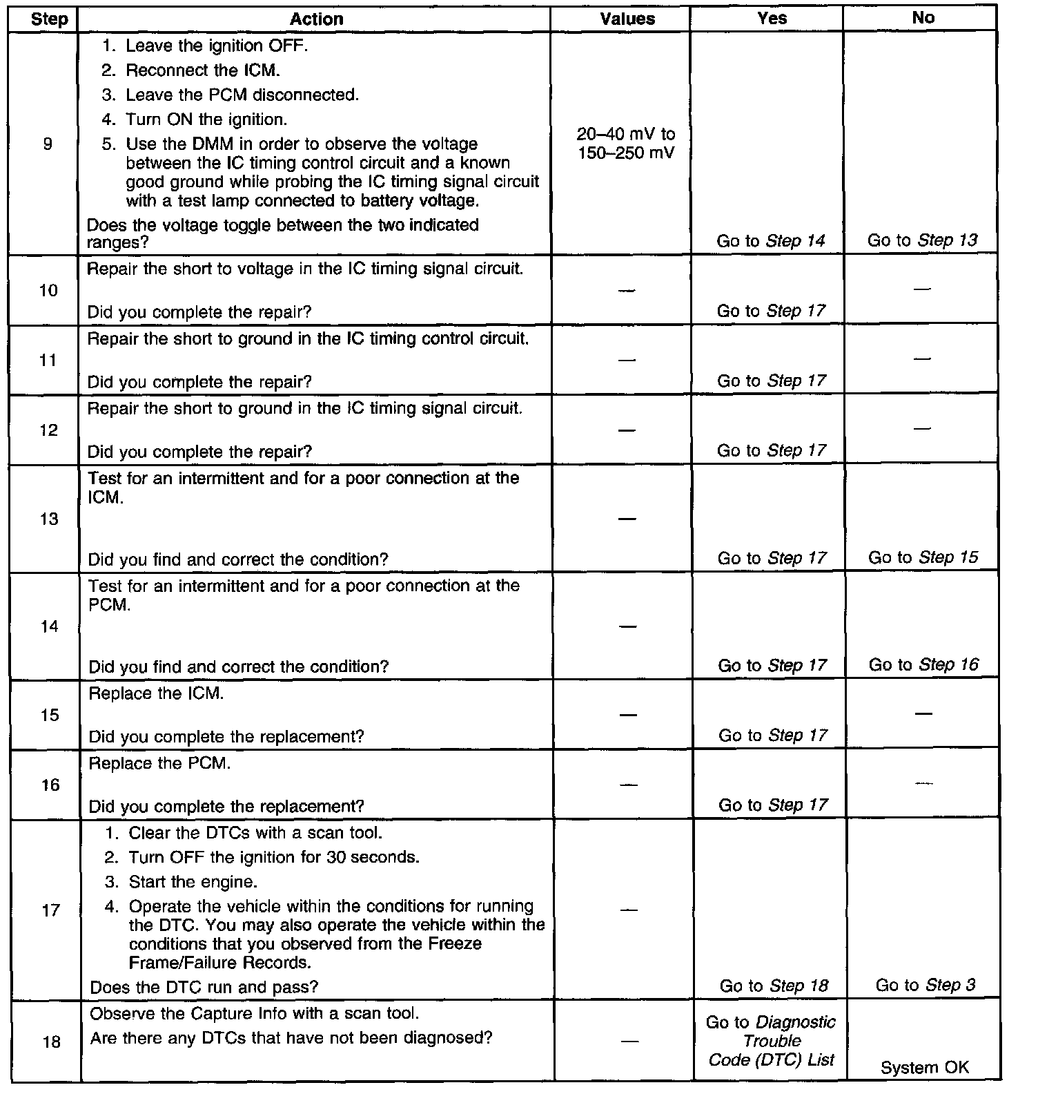 The PCM detects a short to voltage in the IC timing signal circuit.
