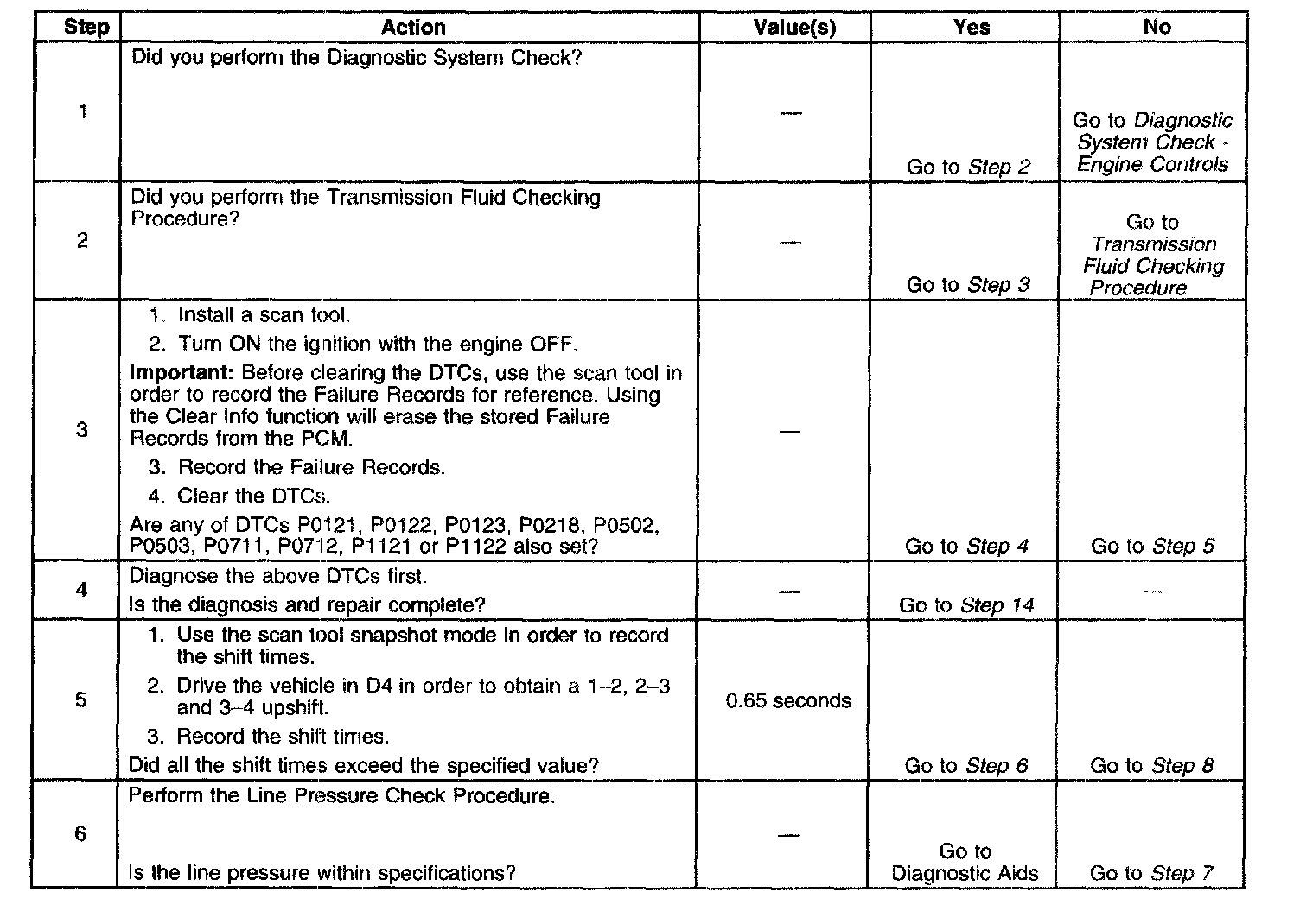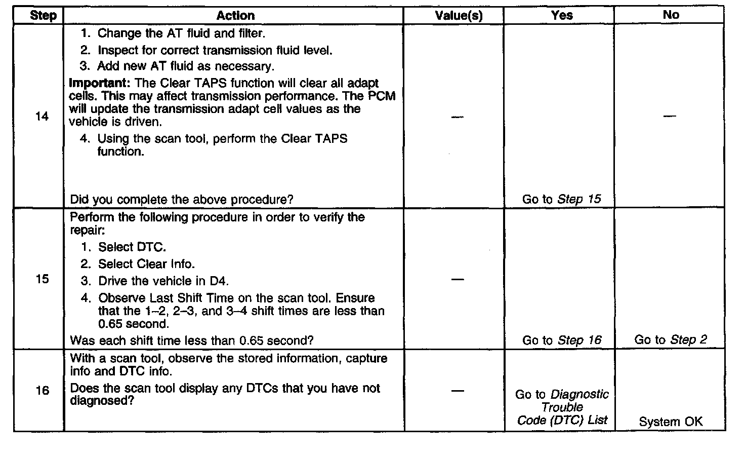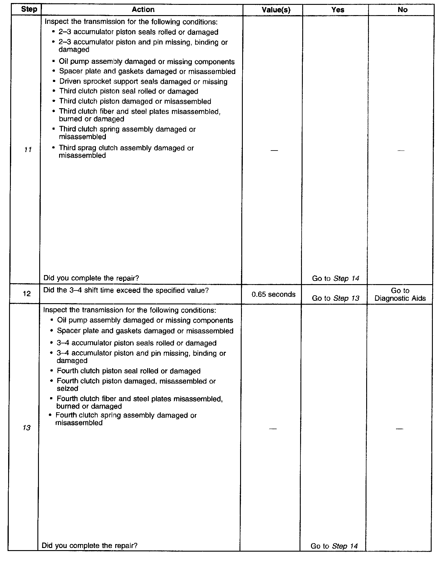 13. This step inspects or repairs components that may cause a maximum adapt and long 3-4 upshift.