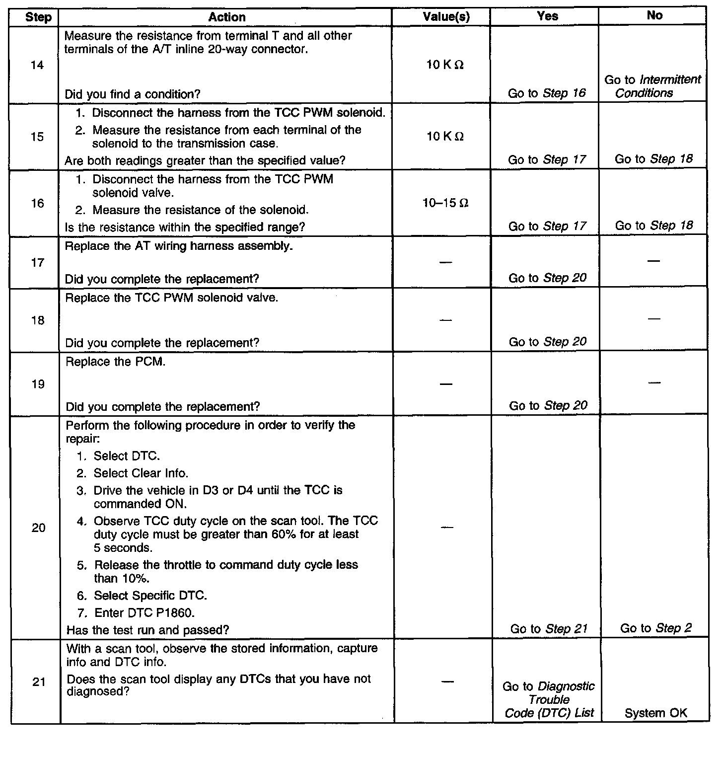 DTC P1860 sets when one of the following conditions exists for at least 5 seconds: