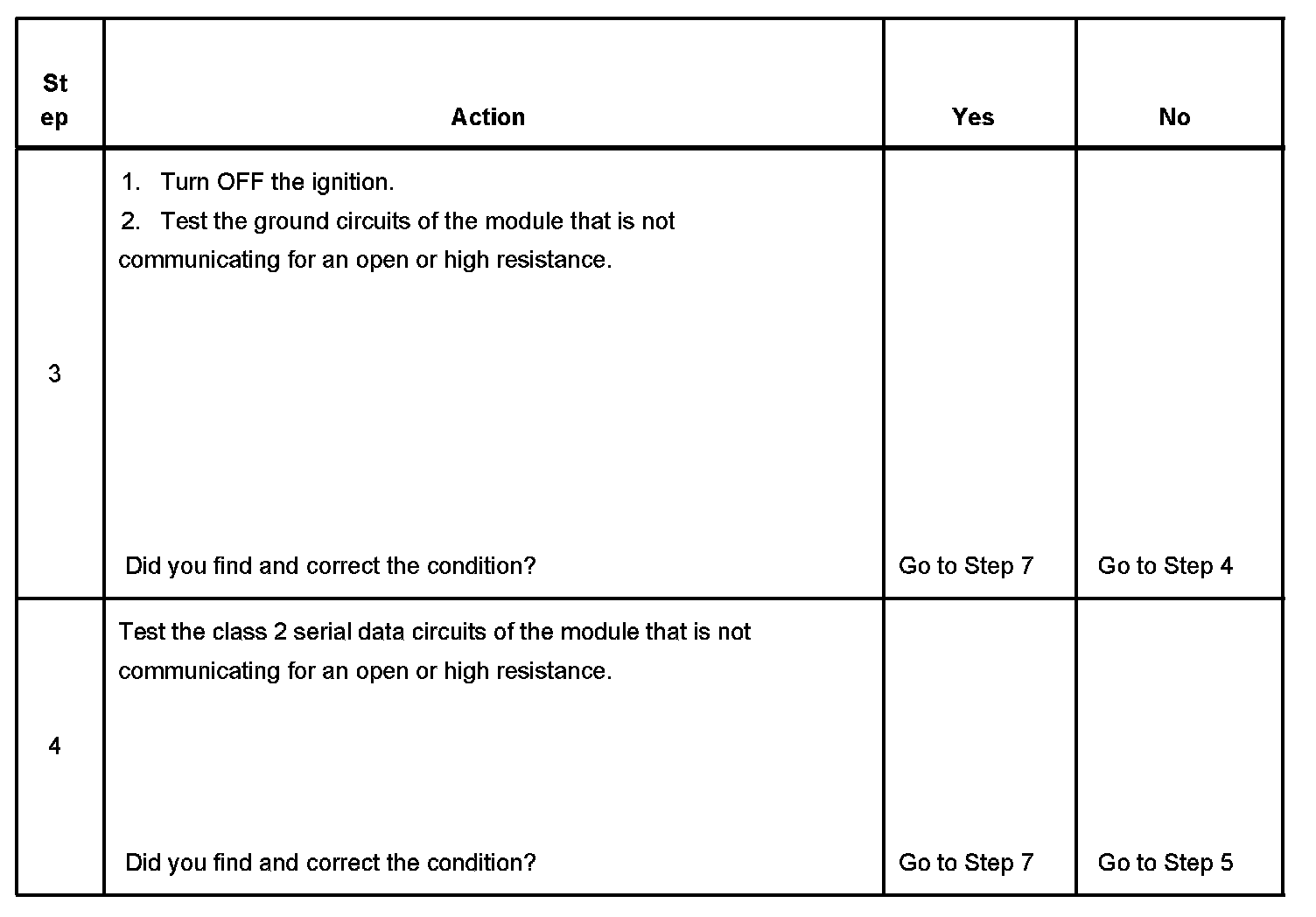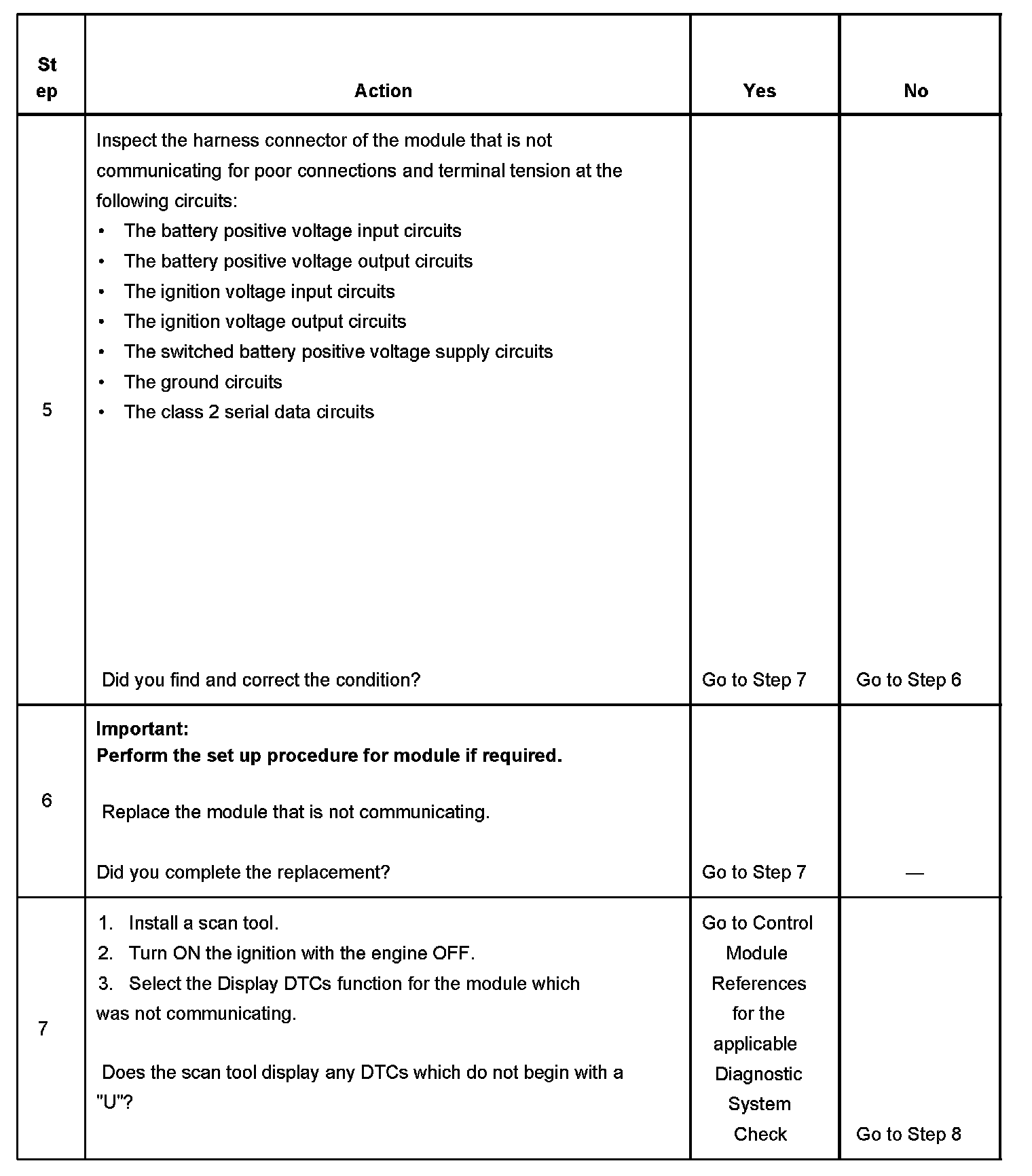 7. The module which was not communicating on the class 2 serial data circuit may have set Loss of Communication DTCs for those modules that it was monitoring.