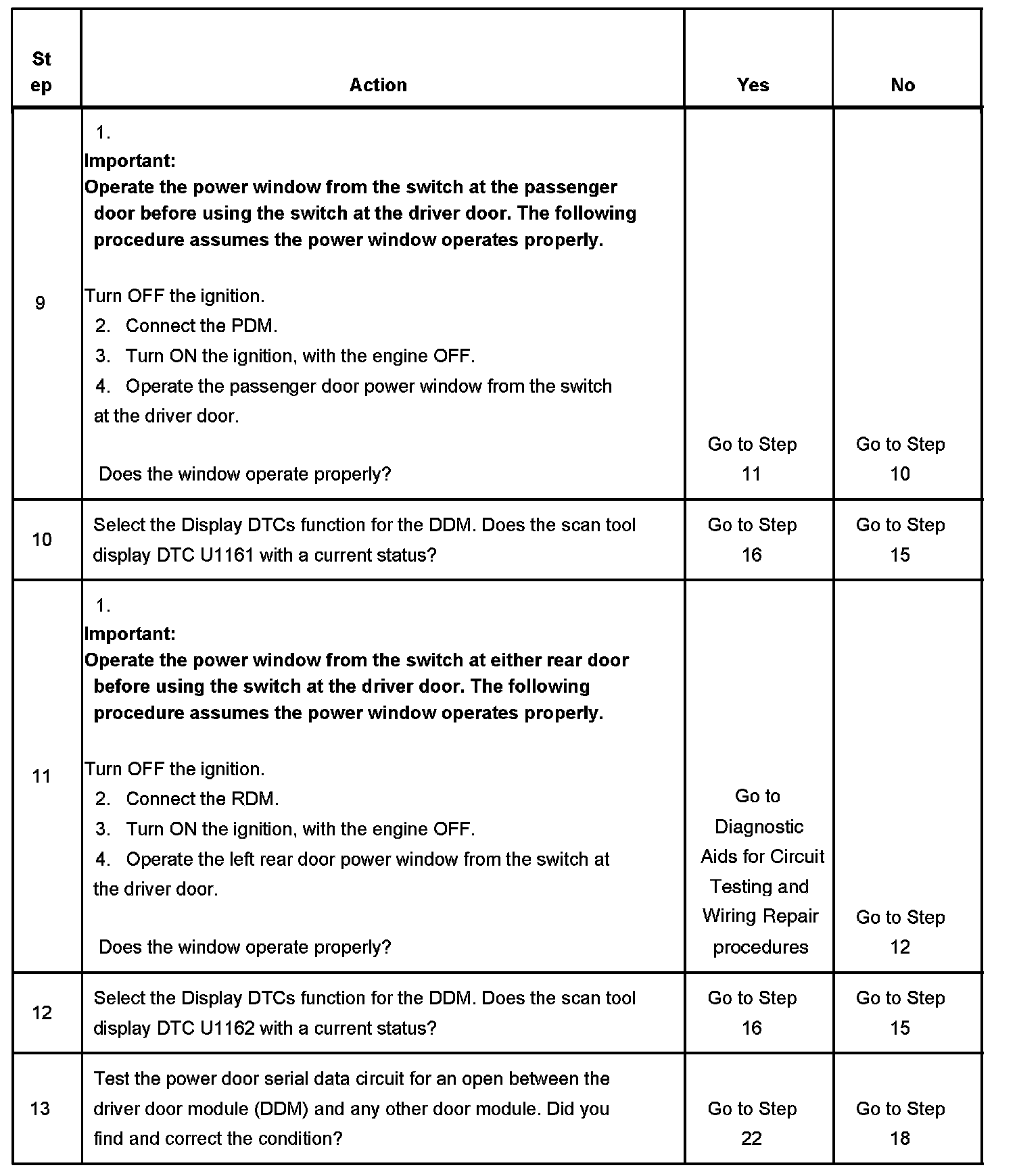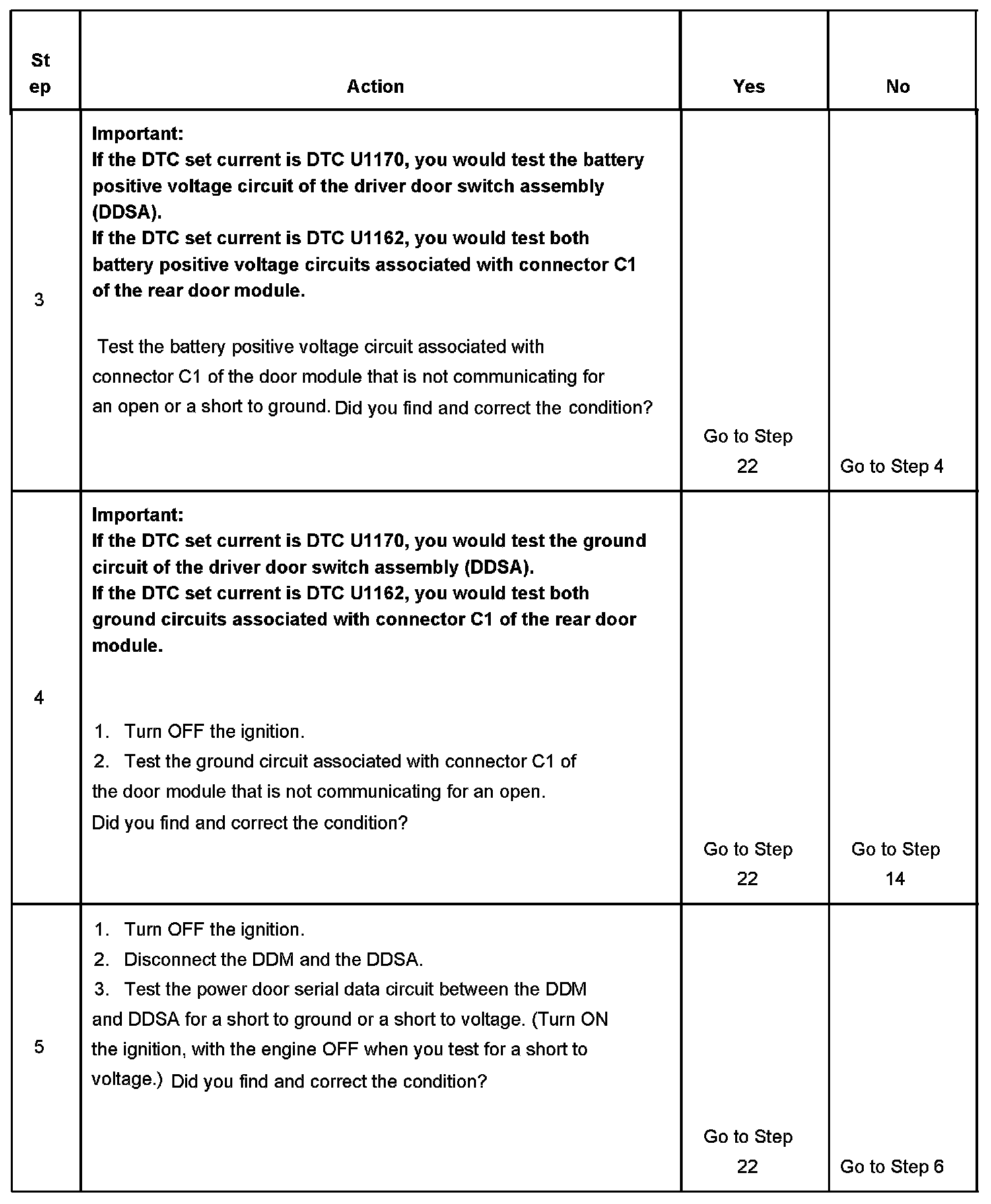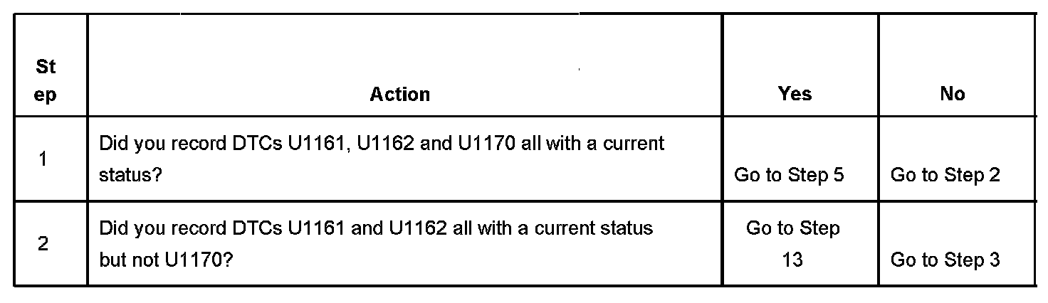 1. Diagnostic trouble codes U1161, U1162 and U1170 set simultaneously indicate a total malfunction of the power door serial data circuit.