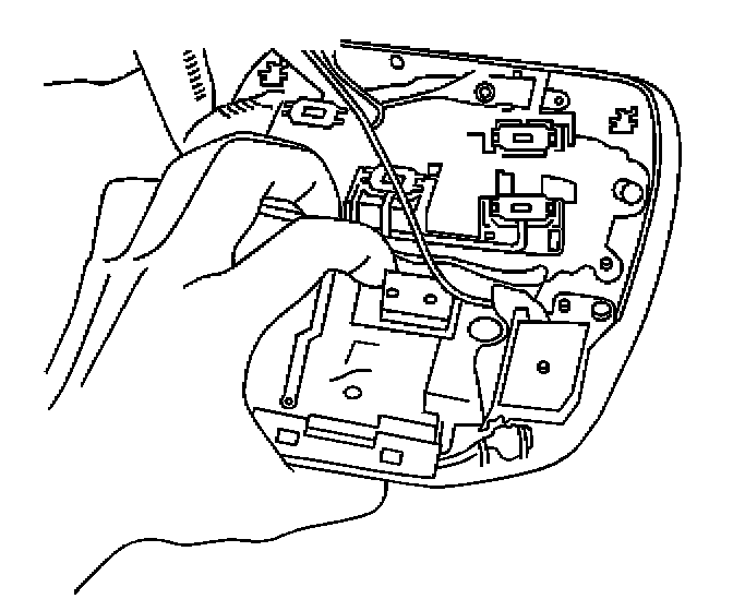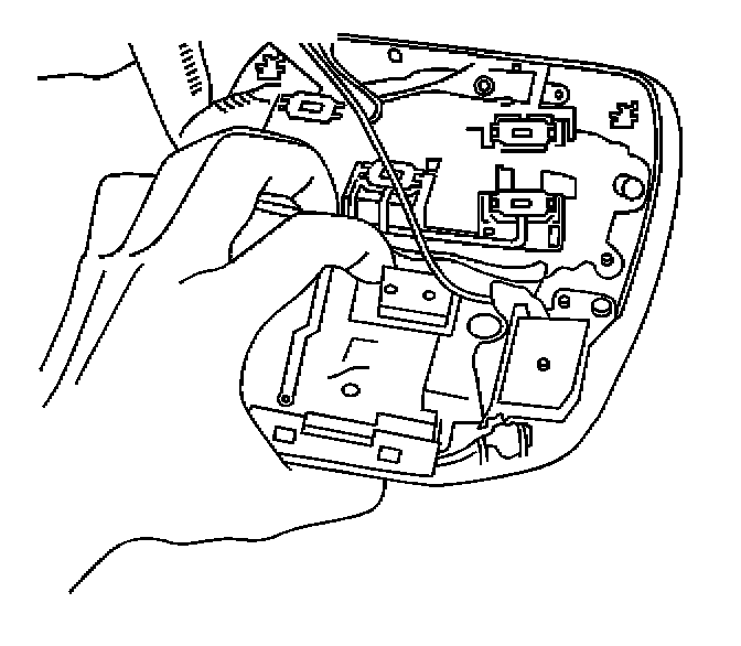 2. Push the garage door opener (GDO) out the front of the overhead console by press on the rear edge of the GDO.