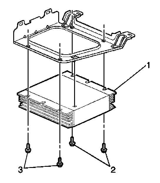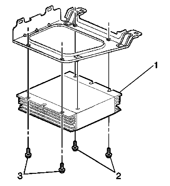 1. Slide the amplifier up and under the forward fasteners (2) in the amplifier bracket.