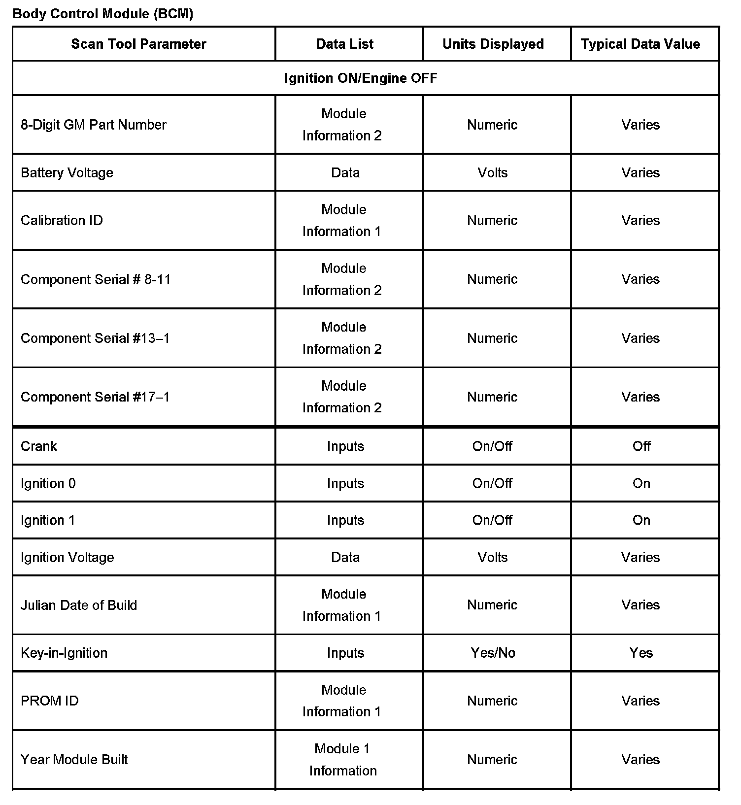 Scan Tool Data List