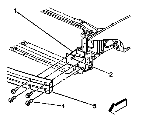 2. Install the bolts (4) to retain the impact bar (3) to the bumper brackets.