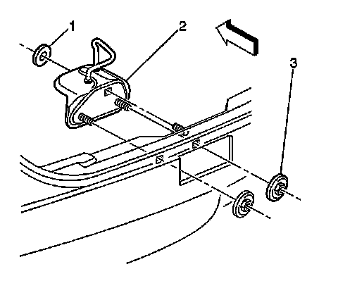 4. Remove the nuts (3) retaining latch striker (2) from outside the rear compartment.