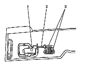 4. Remove the 2 fasteners (3) from the latch assembly.
