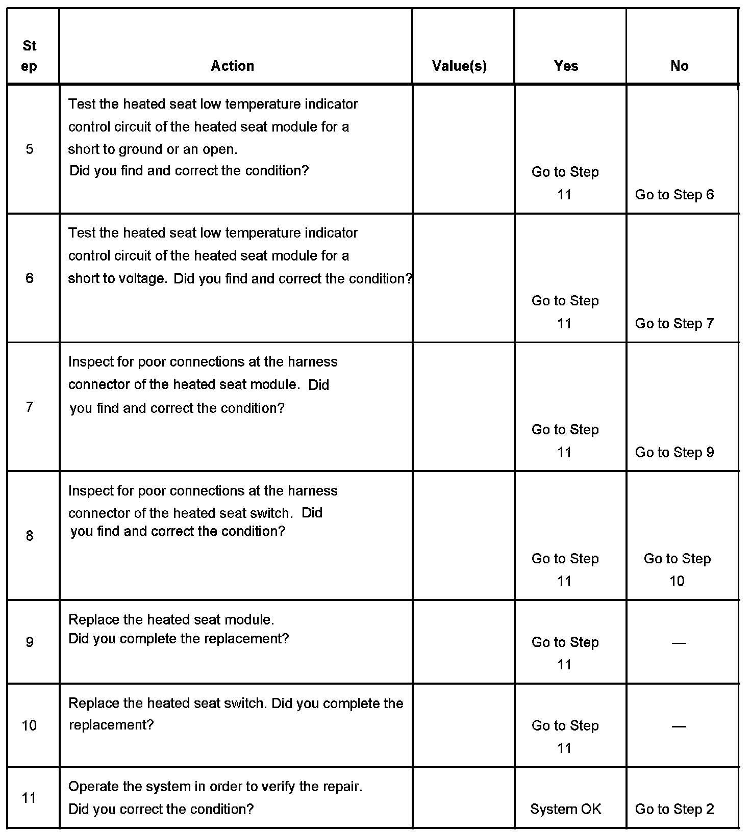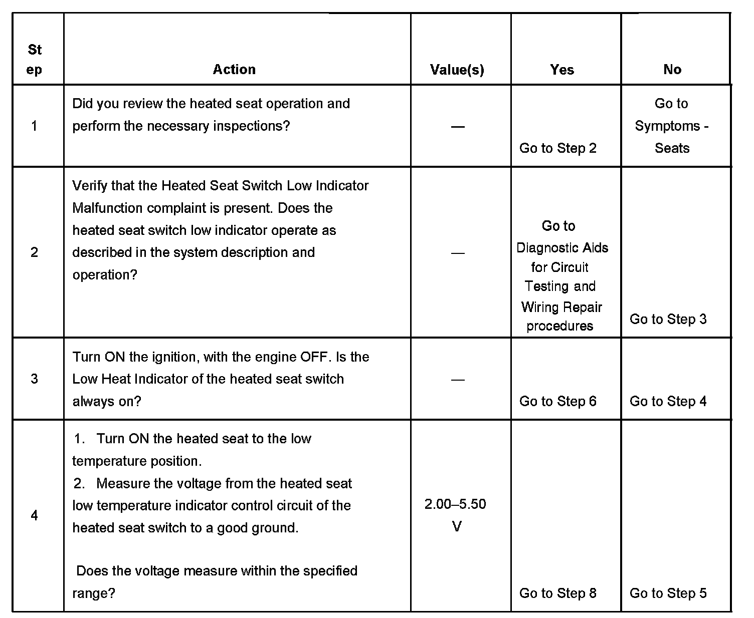 Heated Seat Switch Low Indicator Malfunction